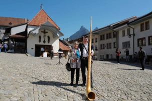 Nous continuons notre route au pittoresque village de Gruyères situé au pied des Préalpes dans le canton de Fribourg. La cité piétonne, ses pavés et sa fontaine nous invitent à une douce flânerie.