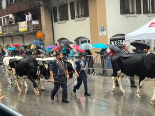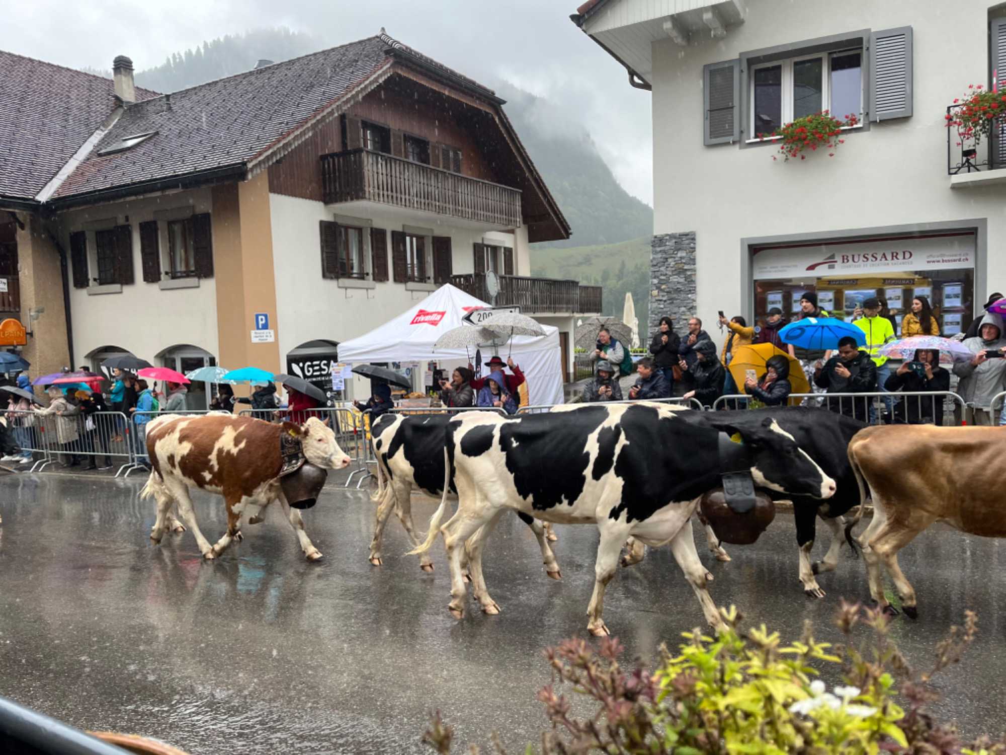 Nous avons quitté tôt ce matin, direction Bulle, pour rejoindre notre guide local Sylvia, pour la désalpe à Charmey. Il tombait des clous ou encore on peut dire des cordes.