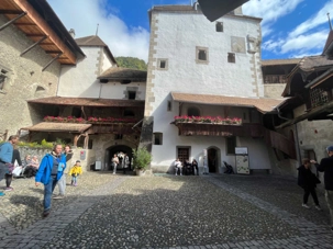 Par la suite, nous avons fait la belle visite du château de Chillon, construit sur un rocher calcaire qui avance dans le lac Léman entre Montreux et Villeneuve. Sa situation stratégique permettait de contrôler militairement et commercialement la route vers l’Italie et de demander un droit de péage.