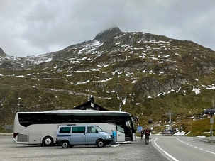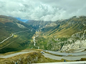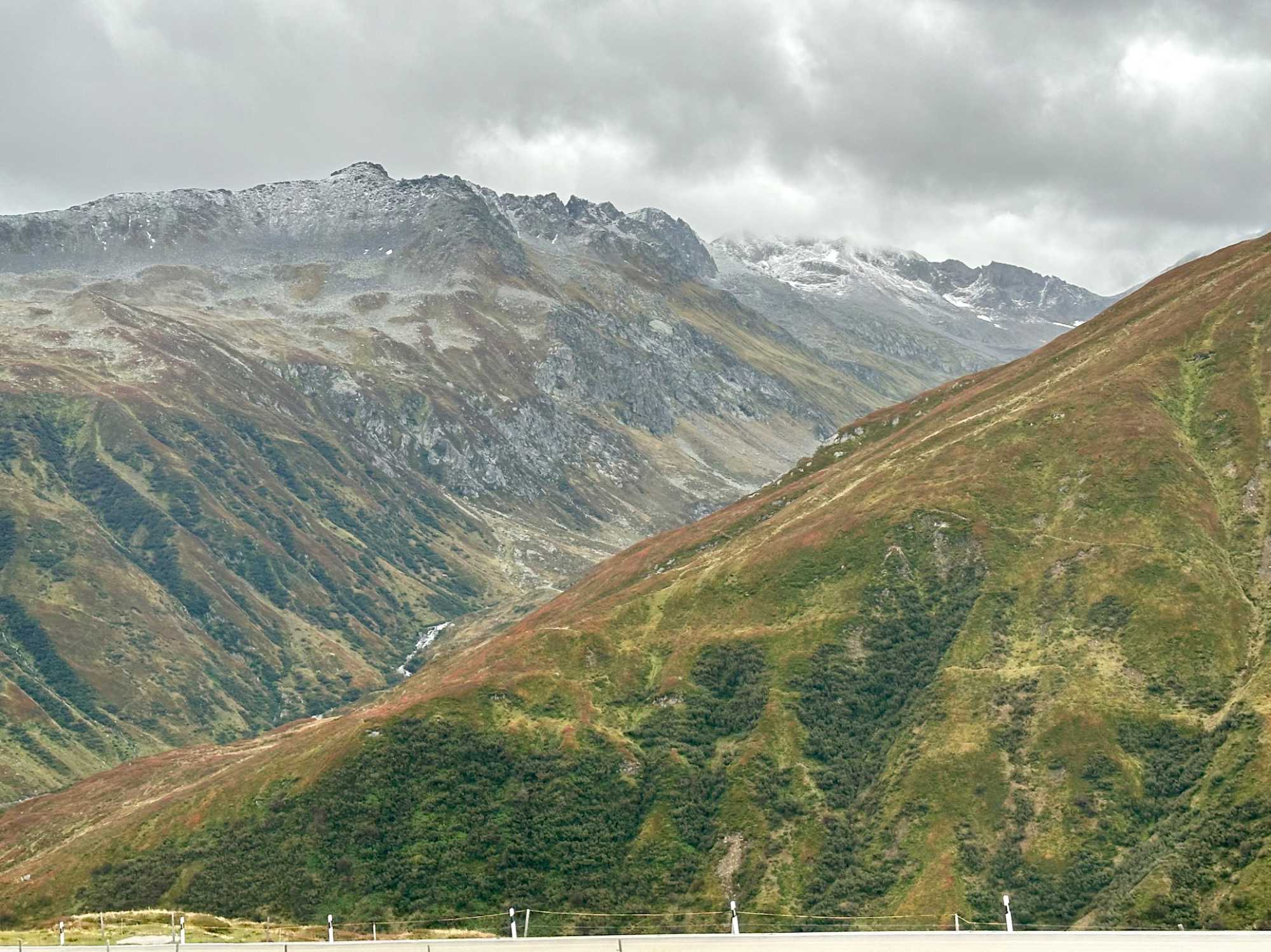 Bonjour a vous tous qui nous suivez dans ce merveilleux pays qu’est la Suisse. Nous avons quitté Saint Moritz avant le lever du soleil. Je peux vous confirmer que mon groupe est exceptionnel. Tous à l’heure et toujours de bien bonne humeur pour partir en découverte. Nous avions notre train ce matin à 7 h 00 et oui c’est tôt mais à la suite des intempéries de l’été en Suisse et des bris sur certaines routes ferroviaires, plusieurs départs furent perturbés. Nous avions un départ à 9 h 00 mais qui a changé tout dernièrement. Ce sont des choses que nous ne pouvons contrôler mais comme souvent un changement peut apporter son lot de bonheur, nous avons été choyés par la vue du lever de soleil sur les montagnes. Ce trajet a été spectaculaire et les photos vous le prouverons. Merci à Françoise pour m’avoir partagée quelques belles photos du lever sur les montagnes. Nous avions une belle balade en train d’un peu plus de 2 heures ce matin. Nous en avons bien profité et nous avons oublié notre réveil tôt de ce matin. Nous sommes arrivés dans la belle ville de Coire (Chur en allemand), la ville a un charme fou, avec ses montagnes en toile de fond, ses ruelles tortueuses et ses monuments historiques. Avec son histoire remontant à plus de 13 000 ans, Coire est la plus ancienne ville de Suisse. Nous avons suivi notre guide Barbara qui nous a fait visiter la ville et ses beautés. Une promenade tranquille à travers la vieille ville piétonnière nous a amené par de petites ruelles tortueuses dans la cour de l’évêché. Nous avons rejoint la Cathédrale, Notre-Dame de l’Assomption qui est volontiers désignée comme étant l'emblème de la ville épiscopale de Coire. Plutôt sobre à l'extérieur, elle se distingue par son magnifique intérieur que nous avons photographié avec plaisir. Cette cathédrale vieille de 800 ans a été rouverte au public après de longues années de restauration. La vieille ville de Coire est l’une des mieux préservées de Suisse. Elle a fait constamment l’objet de travaux de restauration durant les 20 dernières années et est aujourd’hui presque entièrement piétonnière pour notre grand bonheur ce matin. Le soleil était au rendez-vous et la température pour marcher était des plus agréable. Nous avions prévu un lunch très tôt en matinée afin de pouvoir quitter plus tôt pour notre route panoramique de montagne. Nous avons pris un excellent brunch dans un très vieil hôtel de la ville. L'Hôtel Stern Chur est le seul hôtel historique suisse 4 étoiles à Coire, capitale du canton des Grisons et avec plus de 300 ans d’histoire. Nous avons été très bien reçus et ce fût un repas différent et délicieux. Après ce repas nous avons retrouvé David et notre autobus pour entreprendre une traversée des alpes suisses par la route et non en train. Nous étions prêts pour cette découverte et avec notre excellent chauffeur nous étions en confiance. Nous avons même suivi pendant quelques kilomètres le train dans lequel nous aurions dû circuler. Mais maintenant après avoir fait le trajet par la route je peux vous confirmer que nous n’avons rien perdu au change car la route était à couper le souffle! Nous avons fait route vers le col de la Furka qui relie Andermatt, dans le canton d’Uri, à Gletsch, dans le canton du Valais. Il fait partie du circuit très apprécié des trois cols avec le Grimsel et le Susten que nous avons aussi traversé. Le col de la Furka est le plus ancien de nos trois cols alpins. Il a été ouvert en 1865 et relie le Valais au canton d'Uri. Certaines scènes du film de James Bond "Goldfinger" ont été tournées au col de la Furka en 1964. Depuis, au plus tard, le col de la Furka a acquis un statut culte. Mes voyageurs étaient sous le charme de la beauté de ces paysages par un temps splendide. C’était bien important et nous avions vérifié les conditions routières et aussi la température avant de s’engager sur cette route que nous avons faite en 4 heures. Le passage par le col est toutefois beaucoup plus attractif, que ce soit à vélo, en moto ou en voiture. Plusieurs de mes voyageurs se seraient bien vus en motos sur ces routes en lacet. Nous avons aussi vu un seul vélo mais nous ne pouvions y croire sachant ce qu’il devait affronter comme montée.