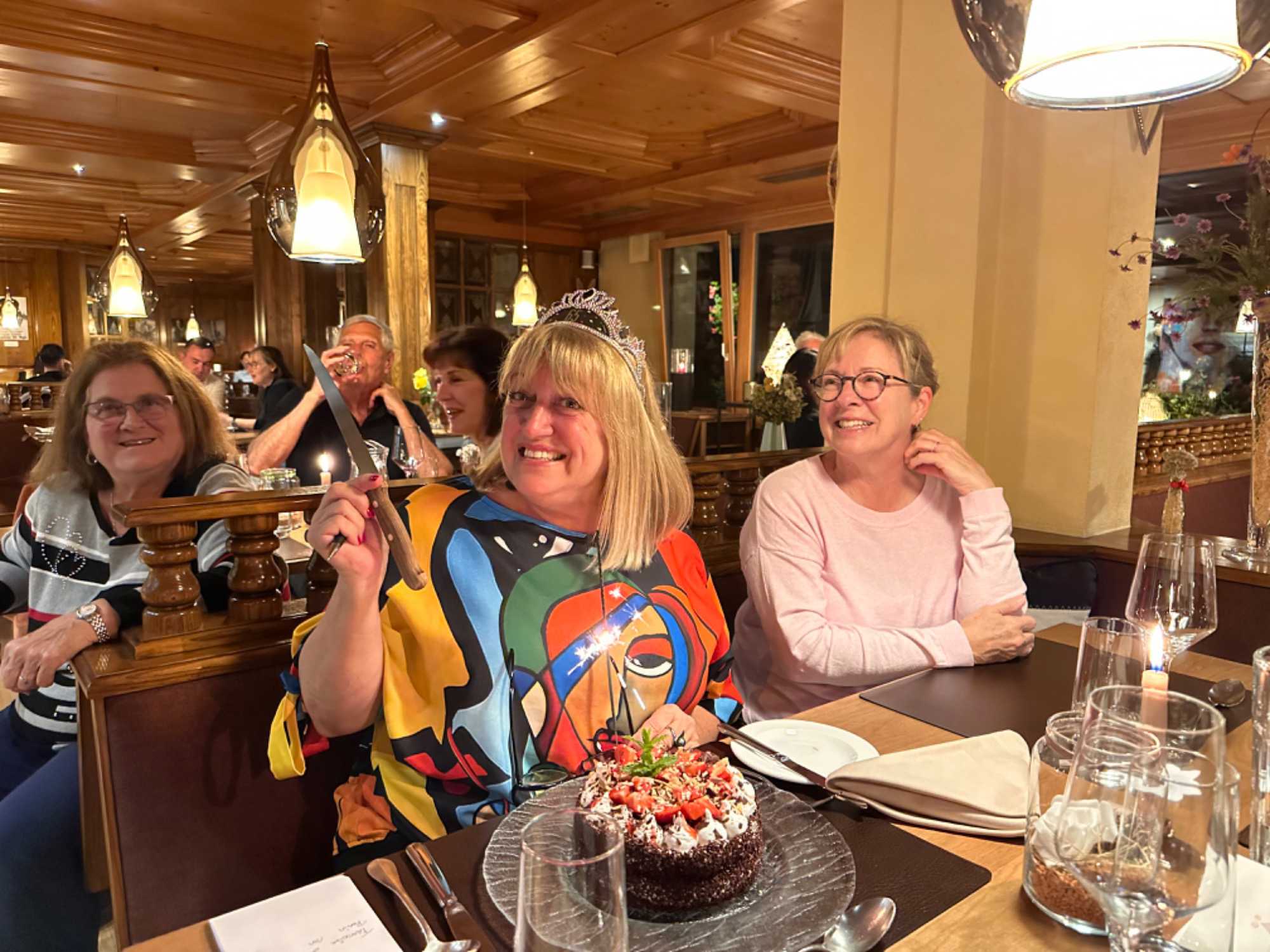 Ce soir nous avons pris notre bon souper à notre hôtel et mes voyageurs aidés de ma petite sœur avait organisé une petite fête pour moi qui venait de fêter mon anniversaire. Ils se sont bien amusés en me demandant de porter une couronne et des lunettes amusantes. Faut bien jouer le jeu et je me suis bien amusée moi aussi.