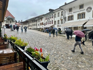 Nous avons pris un succulent lunch à Gruyère et nous avons terminé avec une spécialité locale celle des meringues et de leur double crème 50% oui vous lisez bien c’est de la crème avec ce degré. Qu’est-ce que la double crème à Gruyère : c’est lorsqu'on laisse reposer le lait entier après la traite, la crème finit par affleurer à la surface car elle est le composé le moins dense du lait. La double crème de la Gruyère se compose d'au moins 45% de matières grasses. Épaisse et onctueuse, elle est produite à partir de lait de la Gruyère.