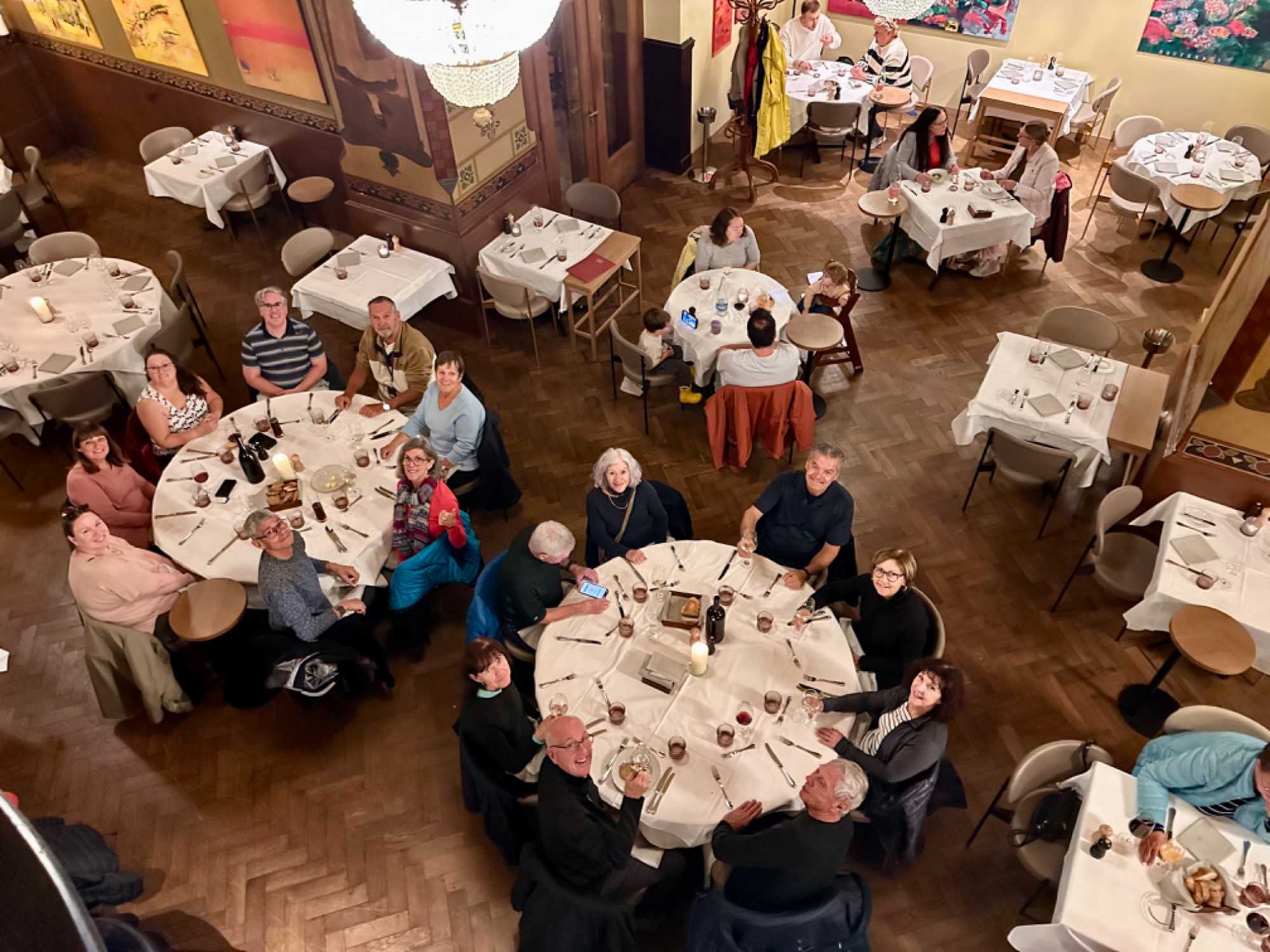 Nous reprenons notre autobus pour revenir vers le Lavaux afin de découvrir l’histoire du vin avec un petit tour en train panoramique dans les collines du Lavaux, patrimoine mondiale de l’Unesco. Avec 800 hectares de vignes et les terrasses d'UNESCO, la région Lavaux est le plus grand vignoble d’un seul tenant de Suisse et offre une vue extraordinaire depuis chaque terrasse. Des vignobles en terrasse surplombent le lac Léman, avec en arrière-plan, des montagnes enneigées... il faut un certain temps pour savourer pleinement ce paysage! St-Saphorin, Dézaley, Epesses: les amateurs de bon vin se mettent à rêver à l’évocation de ces noms, et ne tarissent pas d’éloges sur la situation de Lavaux, au-dessus du Léman. Et ils n’ont pas tort: les qualités paysagères, culturelles et culinaires de Lavaux sont uniques en leur genre. Ses vignobles en terrasses profitent des “trois soleils” : le vrai, celui reflété par le lac et celui emmagasiné dans les murs de pierres. Nous terminons par une très bonne dégustation des vins de la région. Après avoir goûté au blanc, rosé et rouge nous retournons à notre hôtel pour notre dernière soirée en bonne compagnie.