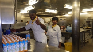 Comme nous avions de temps libre à bord du navire avant d’accoster à Ketchikan, j’ai organisé une visite des cuisines pour 25 personnes de mon groupe à 10 h 30 avec le chef Ismaël. Ce fut très, très intéressant, surtout avec nos audioguides. C’est inimaginable toute la logistique que demandent 29 restaurants, bars et louanges distincts : Cosmopolitan, Normandie, Cyprius, Tuscan, etc. C’est assez complexe merci et ça demande tout un ballet bien orchestré! Dommage que nous n’ayons plus le droit de faire des photos ni des vidéos, mais je suis certain que mes voyageurs pourront vous en mettre plein la bouche juste par leur description de ce qu’ils ont appris durant ce tour des cuisines.