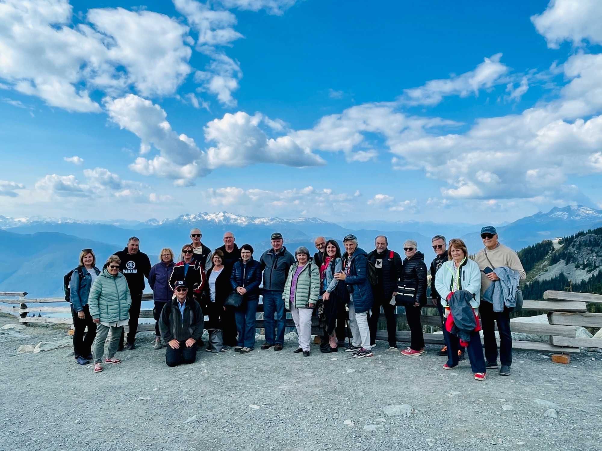 Nous poursuivons la route vers Whistler en passant par le Sea to Sky Highway. C,est une route absolument magnifique.Cette route a été complétée pour les Jeux olympiques de 2010 au coût de 600 millions de $ de fonds fédéraux. Mais après le bon repas et avec la fatigue de la nuit écourtée, certain.e.s en profitent pour grappiller quelques minutes de sommeil…C’est tranquille dans l’autobus…