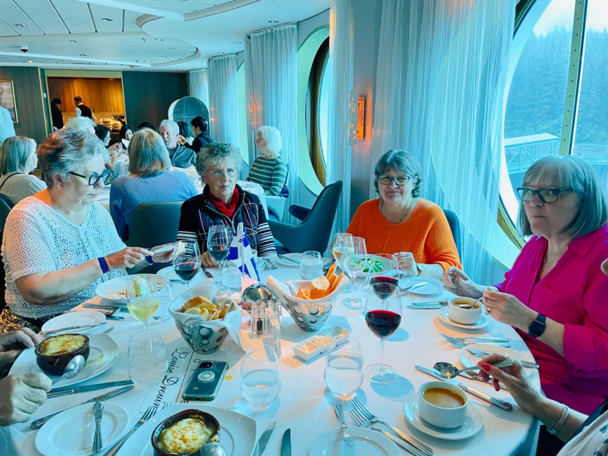 Ce soir, beaucoup se retrouvent à nos tables réservées, tandis que quelques-uns essaient les restaurants de spécialité.