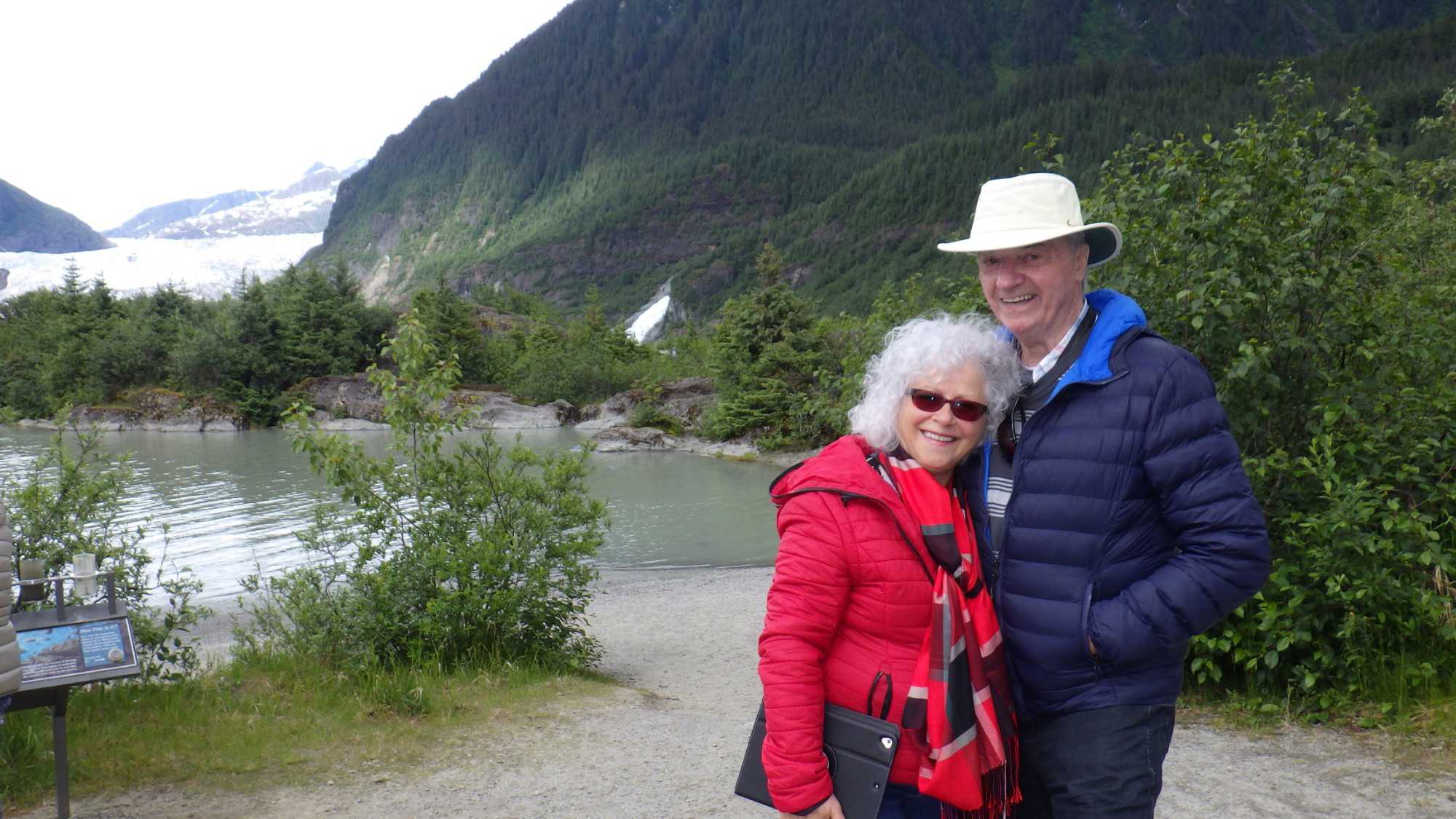 À leur retour d’hélicoptère Louis et Johanne m’ont dit qu’ils avaient survolé les lacs et rivières, la forêt d’un vert fantastique et les crevasses du glacier de Mendenhall pour atterrir directement sur le haut du glacier. Ils sont restés une bonne demi-heure à suivre le guide avec ses explications du pourquoi de l’eau bleu azur, le mouvement du glacier (6 pouces par an), la formation des crevasses, la formation et l’écoulement de la moraine (il s’écoule plus de 500 000 gallons d’eau aux 10 minutes). Merci Louis et Johanne.