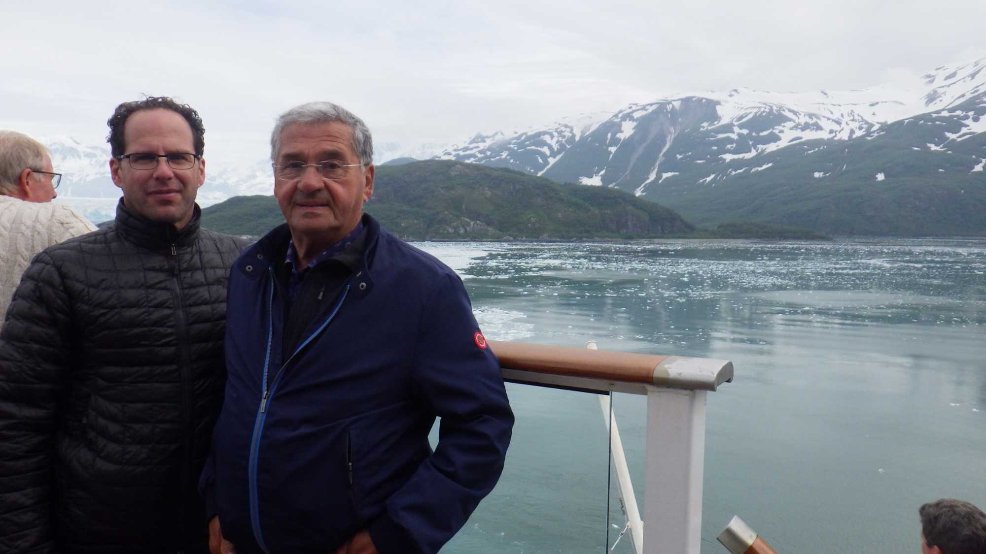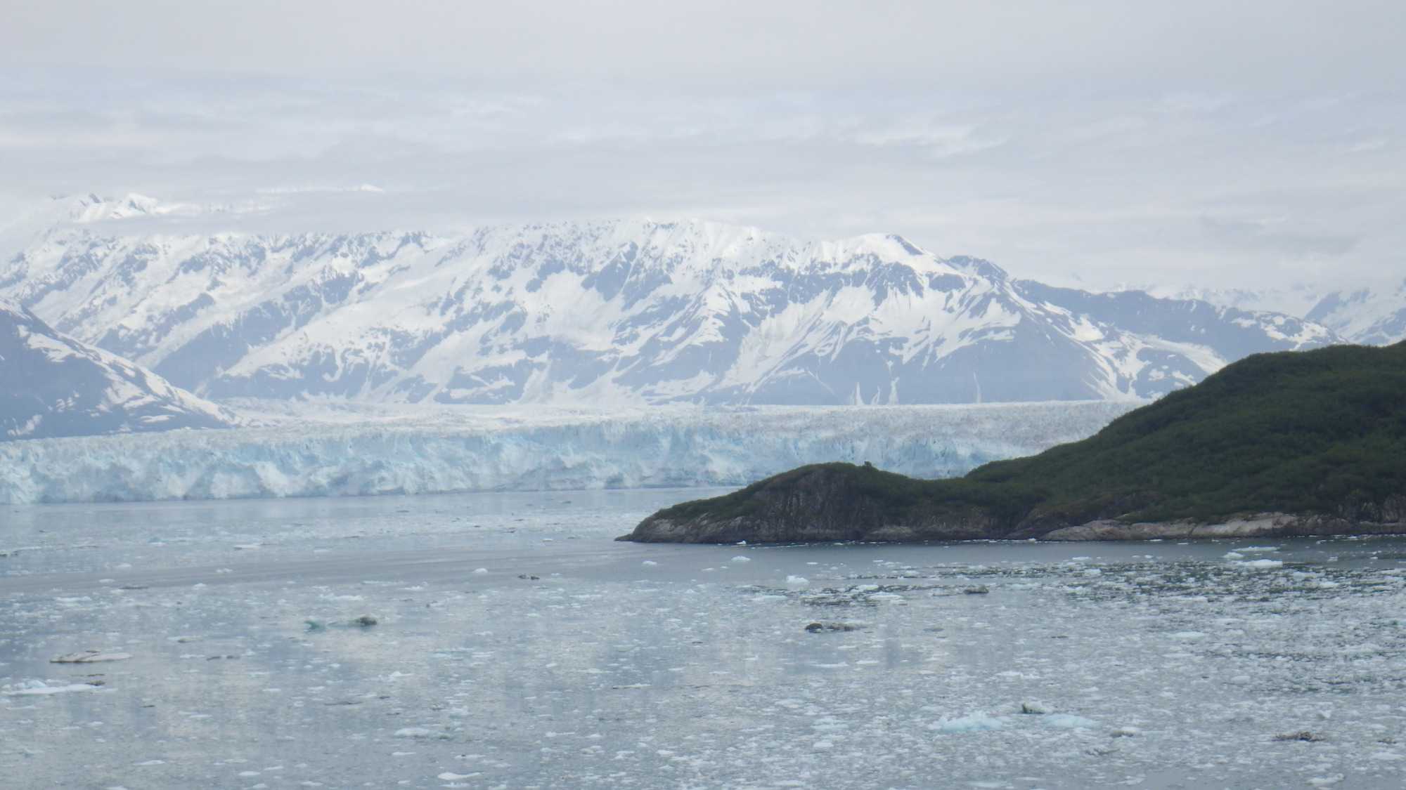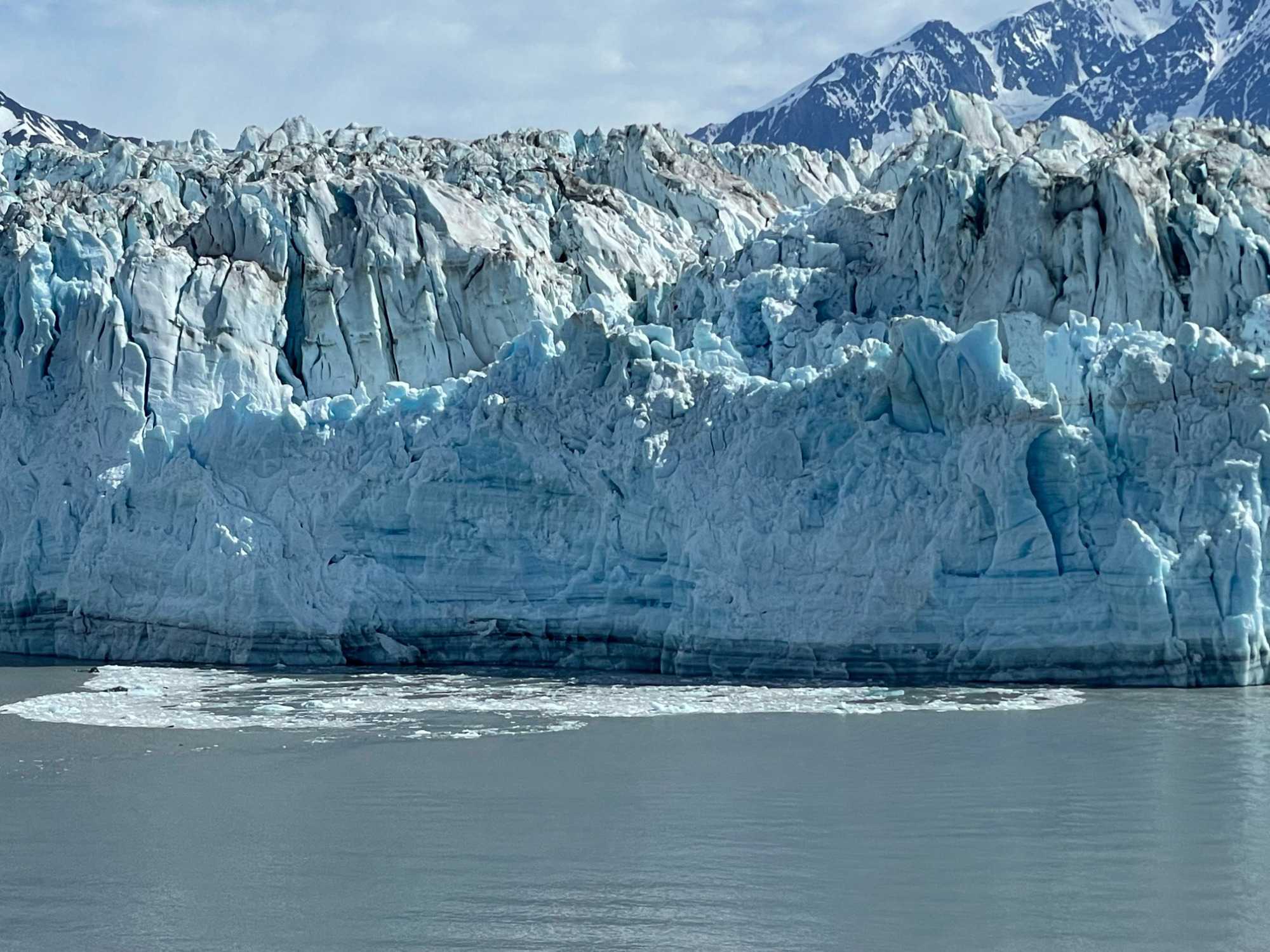 Ce glacier est un des plus célèbres glaciers de l’Alaska. Il est situé au fond de la baie de Yacutat dans un décor gigantesque et son front est immense. Il est le plus long des glaciers d’Amérique du Nord aboutissant dans l’océan, s’étendant sur 10 kilomètres de large et de la hauteur d’un immeuble de 10 étages. C’est un glacier vêlant et lorsque sa langue terminale barre la communication du fjord Russel avec l’océan, le fjord se transforme en un lac jusqu’à la débâcle. Les pans de glace qui se détachent du front du glacier forment des icebergs flottant à la surface de l’eau. Nous avons eu la chance de voir casser d’immenses pièces de glace et d’entendre le bruit semblable à un coup de tonnerre. Wow, wow, wow!. Il se déplace sur lui-même, en rotation lente, pour offrir une vue prenante, peu importe où l’on se trouve. Ce fut vraiment une de mes très belles journées en mer.