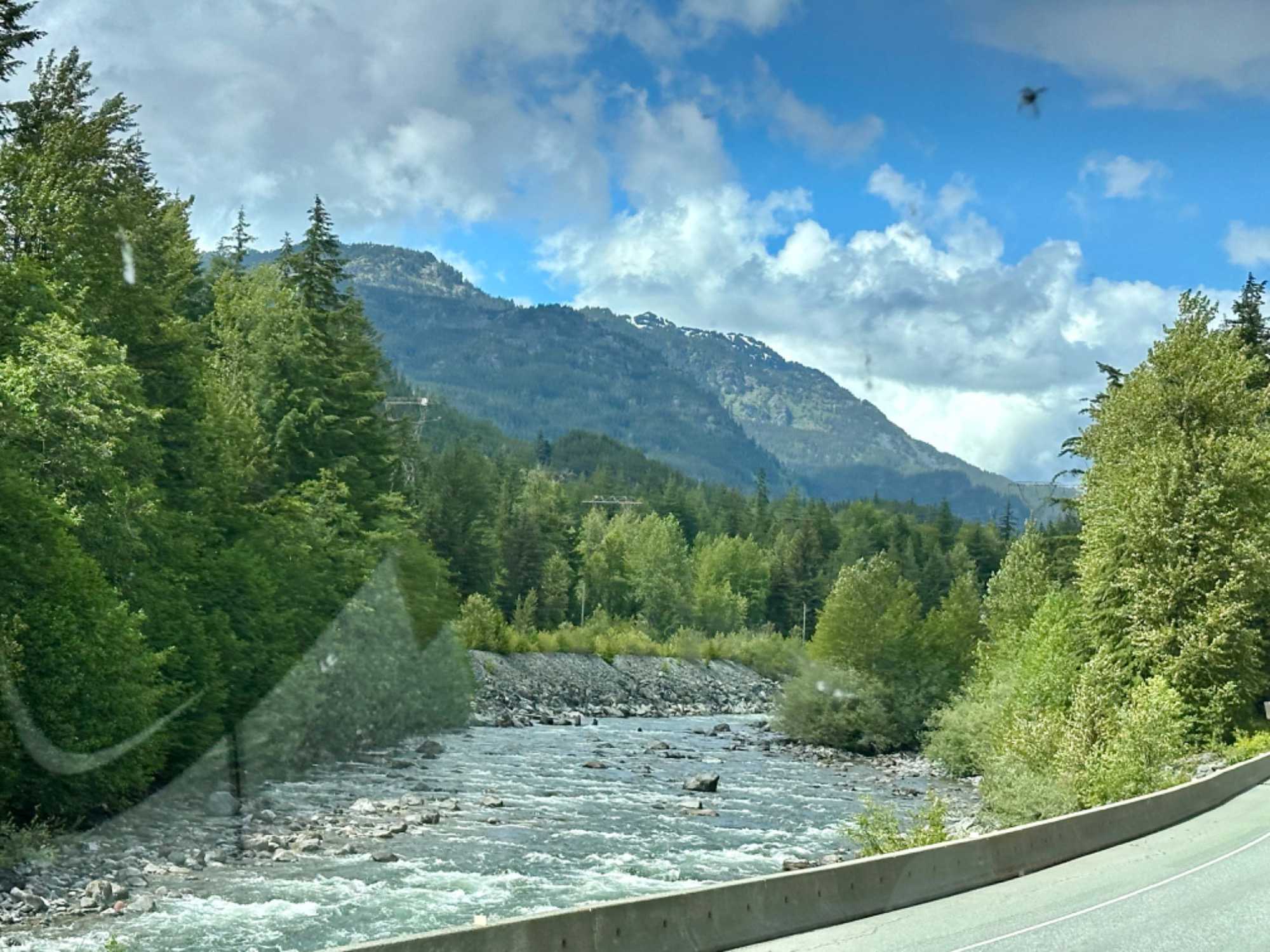 Nous récupérons nos valises et rejoignons notre chauffeur avec qui nous serons les 5 prochaines journées. Avec le décalage horaire c’est toujours très apprécié de se rendre au restaurant prévu avant de faire la magnifique route « The Sea to Sky Highway » cette route de la mer jusqu’au ciel qui m’a toujours bien fascinée avec ces beaux paysages en direction de Whistler. Cette route nous donne la chance de suivre la profonde baie jusqu’à Squamish avec de superbes points de vue sur la spectaculaire chaîne côtière avec ses hauts sommets très connus pour le ski comme Whistler et Blackcomb.