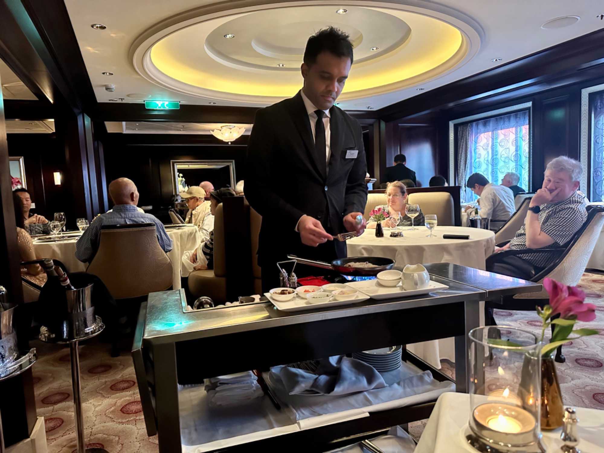 Quelques voyageurs sont revenus pour profiter de la piscine, et des installations de notre beau navire. Un petit café ou à la gelateria pour une glace à bord. Une très belle journée, qui se terminent à nouveau au Sky Lounge pour l’apéro journalier avant de se rendre à la salle à manger. Pour moi, ce soir, j’ai renoué avec le restaurant de spécialité Murano afin de voir les changements. Quel fût ma surprise de voir que depuis 2004 ce même menu existe avec très très peu de changements. Je peux comprendre car tout sur ce menu est invitant et délicieux. Un restaurant à ne pas manquer lorsqu’il est présent sur l’un des navires de Celebrity.