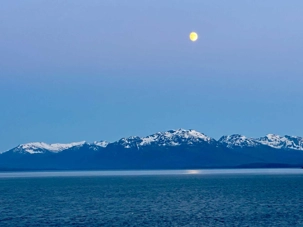 Nous avons fait une belle marche dans la forêt et c’est très intéressant de voir ces arbres majestueux et la végétation dense qui nous rappelle que la pluie est souvent présente, mais pas aujourd’hui 😊! Nous avons suivi le bord de l’eau, par le long trottoir de bois qui a été aménagé, qui nous mène du débarcadère au musée. Ce musée relate l’histoire de la région, il est situé dans une ancienne conserverie réaménagée en musée et boutiques. Lors de notre marche sur le bord du rivage, nous nous sommes arrêtés pour voir Louis aller faire un plongeon dans le Pacifique. Notre aventurier s’était promis de le faire et le voilà à l’eau à faire quelques brasses. Il a évalué la température de l’eau à environ 7 degrés Celsius. Il n’est pas resté trop longtemps. Nous avons continué par la suite vers la visite du musée ou j’ai profité de l’occasion pour leur parler de l’histoire des saumons du Pacifique. Après cette découverte tous avaient quartier libre. Comme le navire ne quittait qu’à 20h30 ce soir, c’était amusant d’avoir et de prendre le temps.