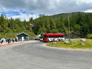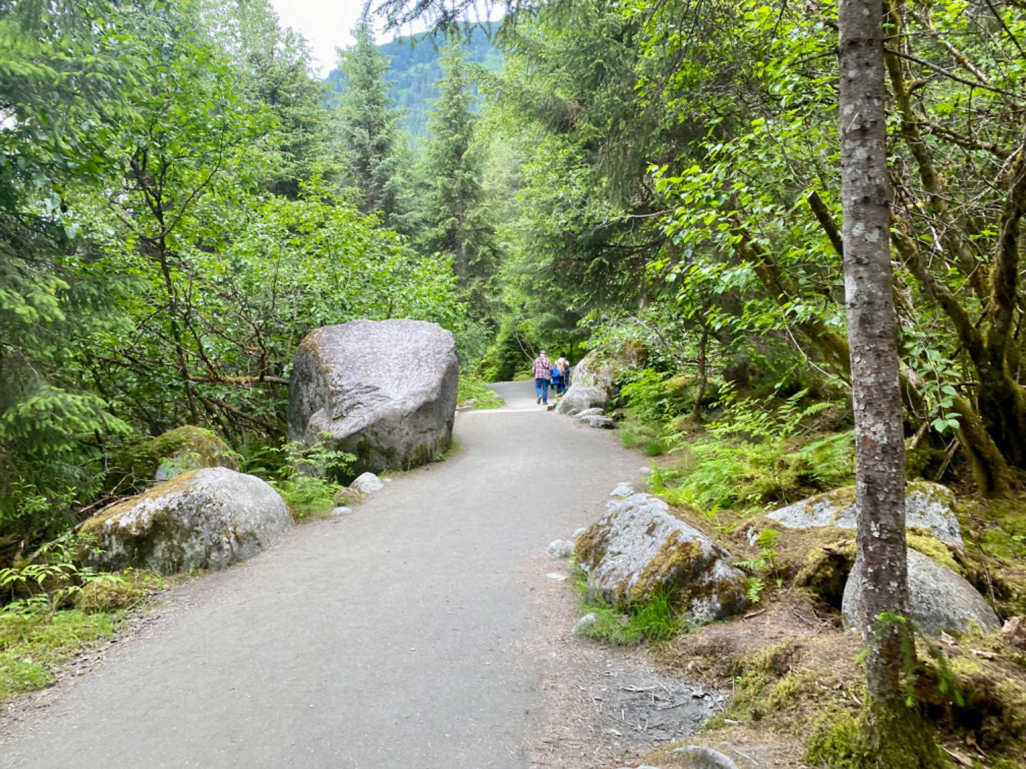 La visite en autobus avec Brett, notre chauffeur, vers le glacier Mendenhall a débuté vers 13 h 15. Impressionnant et majestueux, la visite de l’immense glacier Mendenhall nous a offert tout un spectacle. Un petit sentier d’environ 30 minutes nous amenait plus près et pour les plus marcheurs on peut en moins d’une heure faire l’aller et le retour pour aller jusqu’à la chute. Le galcier perd 300m par année, dû au réchauffement de la planète. Nous faisons partie des privilégiés qui pouvons le voir encore dans toute sa splendeur. J’ai des photos qui montrent le changement à travers les années.