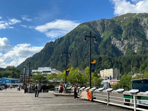 Je rencontre mon groupe sur le quai pour notre découverte de la ville et du glacier Mendenhall que j’accompagnerai cet après-midi.