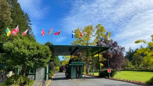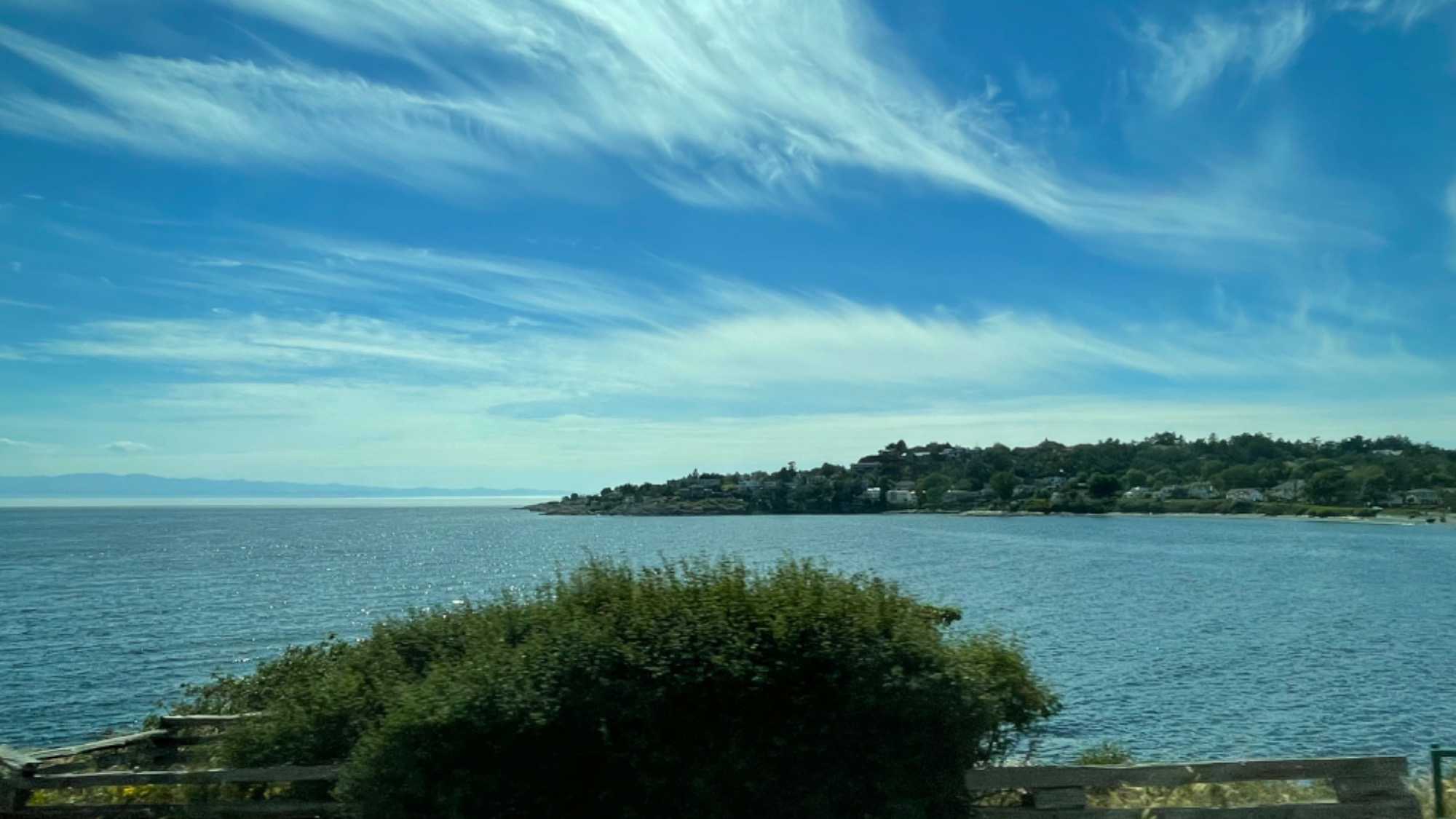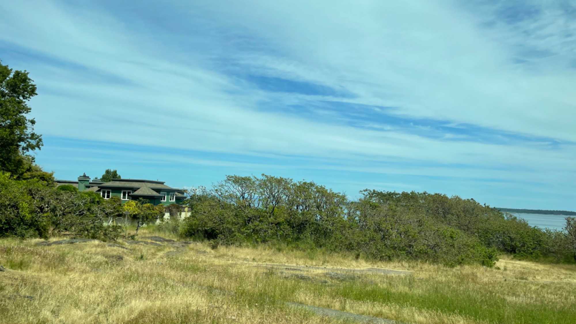 Un peu avant midi, départ à pied pour notre dîner de groupe dans un restaurant situé à 10 minutes à pied. Notre guide local, Daniel, originaire de Québec -qui habite Victoria depuis près de 40 ans- est venu nous y rejoindre pour un tour de ville, en autobus, de Victoria. Premier arrêt au mont Tolmie duquel nous avons pu observer le grand Victoria de même que les baies qui l’entourent. Une vue magnifique sur les monts avoisinants. Continuation vers les Uplands, quartier résidentiel chic, comparable à Westmount au Québec, sur le bord de l’océan. L’air humide et salin emplit nos narines. On ne veut pas faire de jaloux là mais y’a pas de maringouins ici, pas de frappe à bord, on peut laisser les fenêtres ouvertes! Il n’y a même pas de moustiquaire aux fenêtres. Il y a cependant beaucoup de chevreuils, ils ne sont pas farouches, habitués à la présence de l’homme c’en est même un problème parait-il.