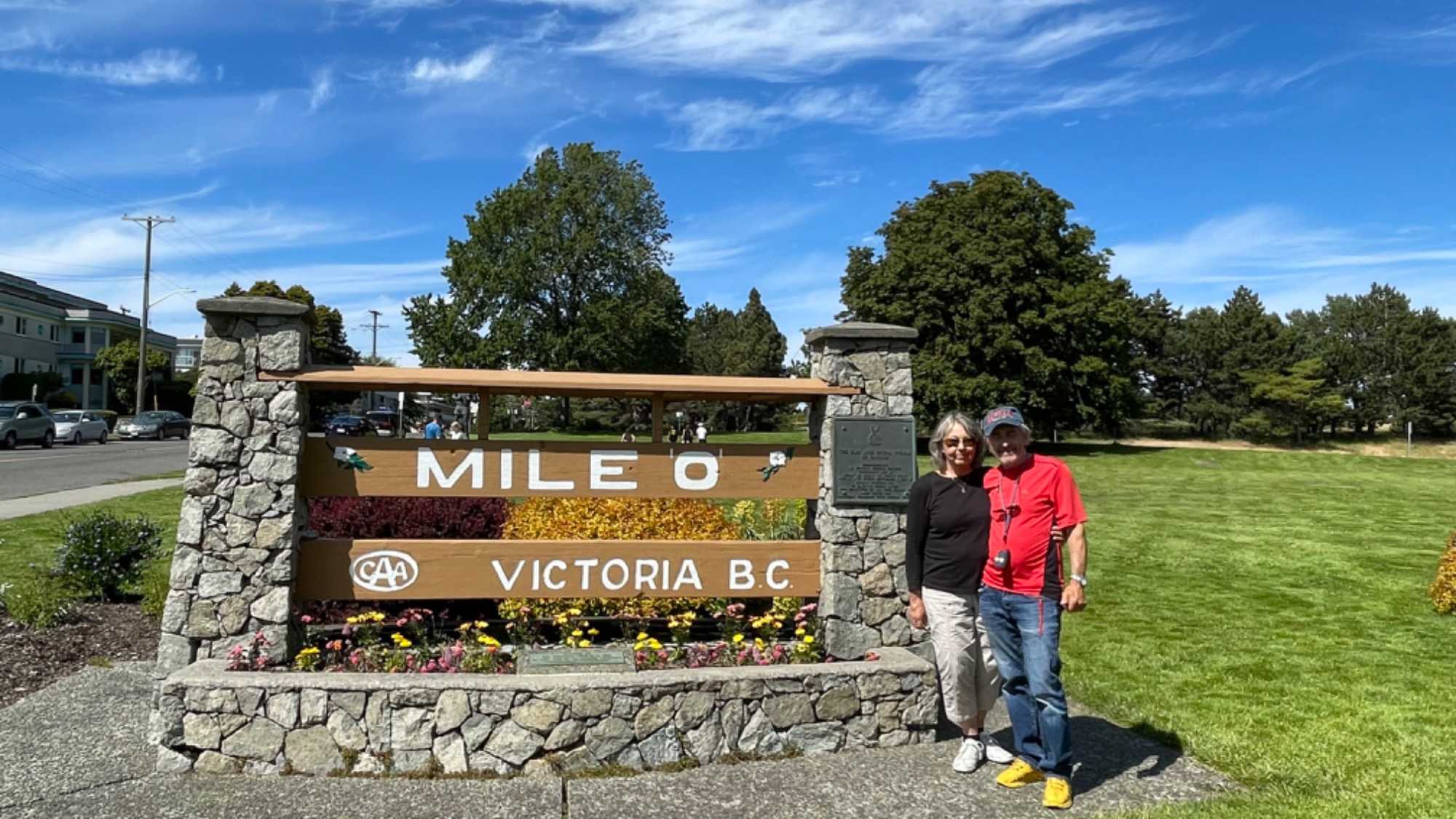 Arrêt au millage zéro, c’est de cet endroit que débute la transcanadienne, le début de la route qui traverse le Canada. L’autre millage zéro est situé à St-Jean, Terre-Neuve et c’est de cet endroit qu’est parti Terry Fox. Il avait mis les pieds dans l’Atlantique et espérait se rendre là où nous sommes, au millage zéro de Victoria. Il n’a pu traverser au complet la province de l’Ontario. Une statue commémore son parcours à quelques mètres de l’Océan.
