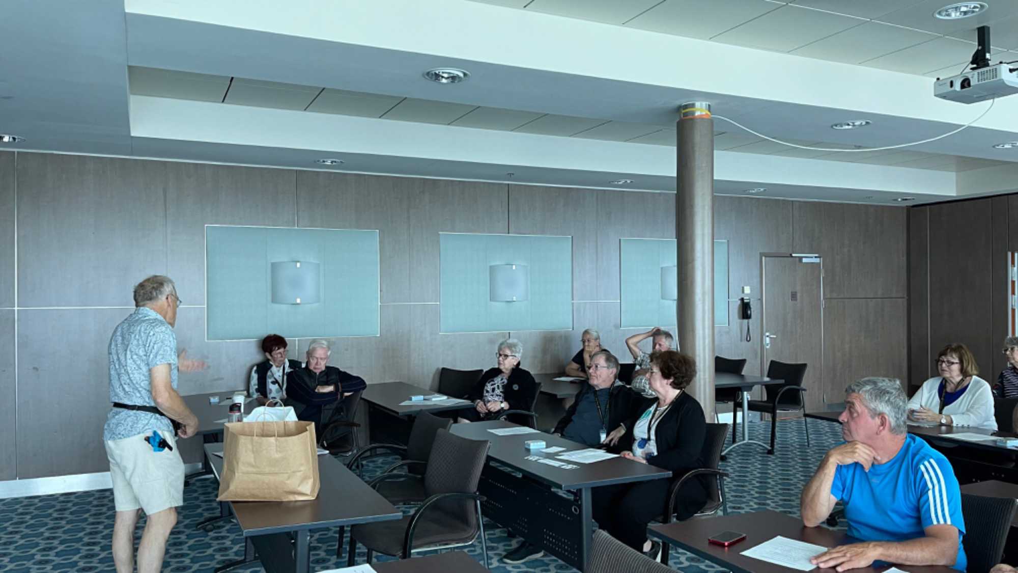 Rencontre à 14 heures avec nos voyageurs afin de leur expliquer comment nous procéderons pour le débarquement demain matin, ça les a rassurés. Nous nous donnons rendez-vous à 19 h 45 pour se rendre à la salle à manger afin de prendre notre dernier repas en groupe.