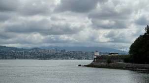 Arrêt photo et informations sur la signification des totems suivi d’un second arrêt, dans le parc, où notre guide nous explique, lors d’une marche en forêt, les différents types d’essences ainsi qu’une description des arbres majestueux (allez voir les photos). La vue sur la ville de Vancouver, du parc Stanley, est magnifique.