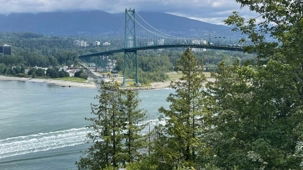 Nous partons en direction de Stanley Park. Le lieu était habité par les Premières Nations, et premiers occupants du site du Parc, il y a des centaines d’années, bien avant la découverte de la ville par Georges Vancouver. Nous prenons le temps et admirons l’architecture du pont Lions, un pont suspendu à usage routier, inauguré en 1938, qui traverse la baie Burrard située entre les villes de Vancouver et Vancouver Ouest. Officiellement nommé First Narrows Bridge, il constitue un des symboles de la ville de Vancouver.