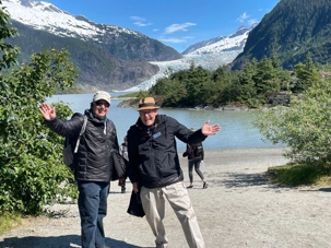 Certains membres de notre groupe ont fait un spectaculaire tour d’hélicoptère. Cette tournée les amenait directement sur le glacier Mendenhall. Ils ont tous été impressionnés par leur expérience.