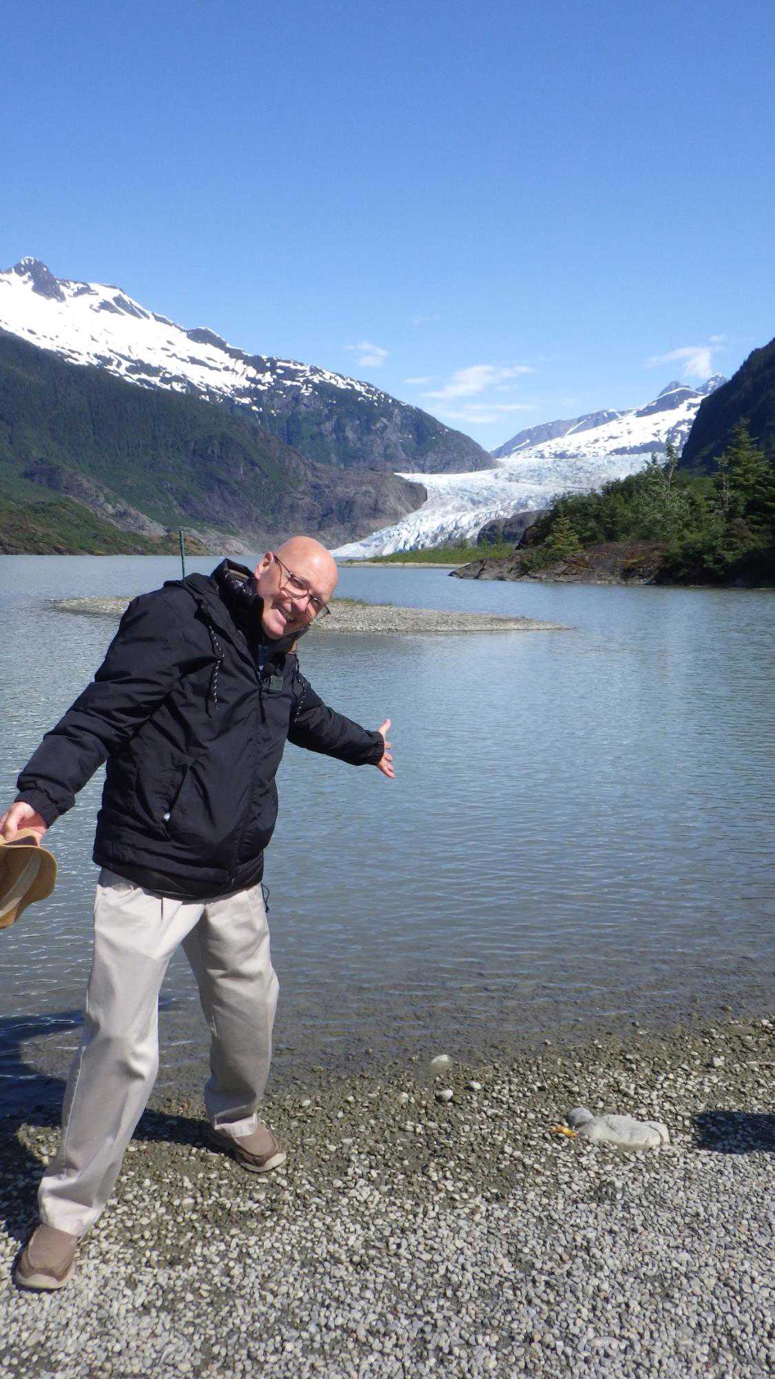 À leur retour d’hélicoptère Pierre, Francine et Roland m’ont dit qu’ils avaient survolé les lacs et rivières, la forêt d’un vert fantastique et les crevasses du glacier de Mendenhall pour atterrir directement sur le haut du glacier. Ils sont restés une bonne demi-heure à suivre le guide avec ses explications du pourquoi de l’eau bleu azur, le mouvement du glacier (6 pouces par an), la formation des crevasses, la formation et l’écoulement de la moraine.