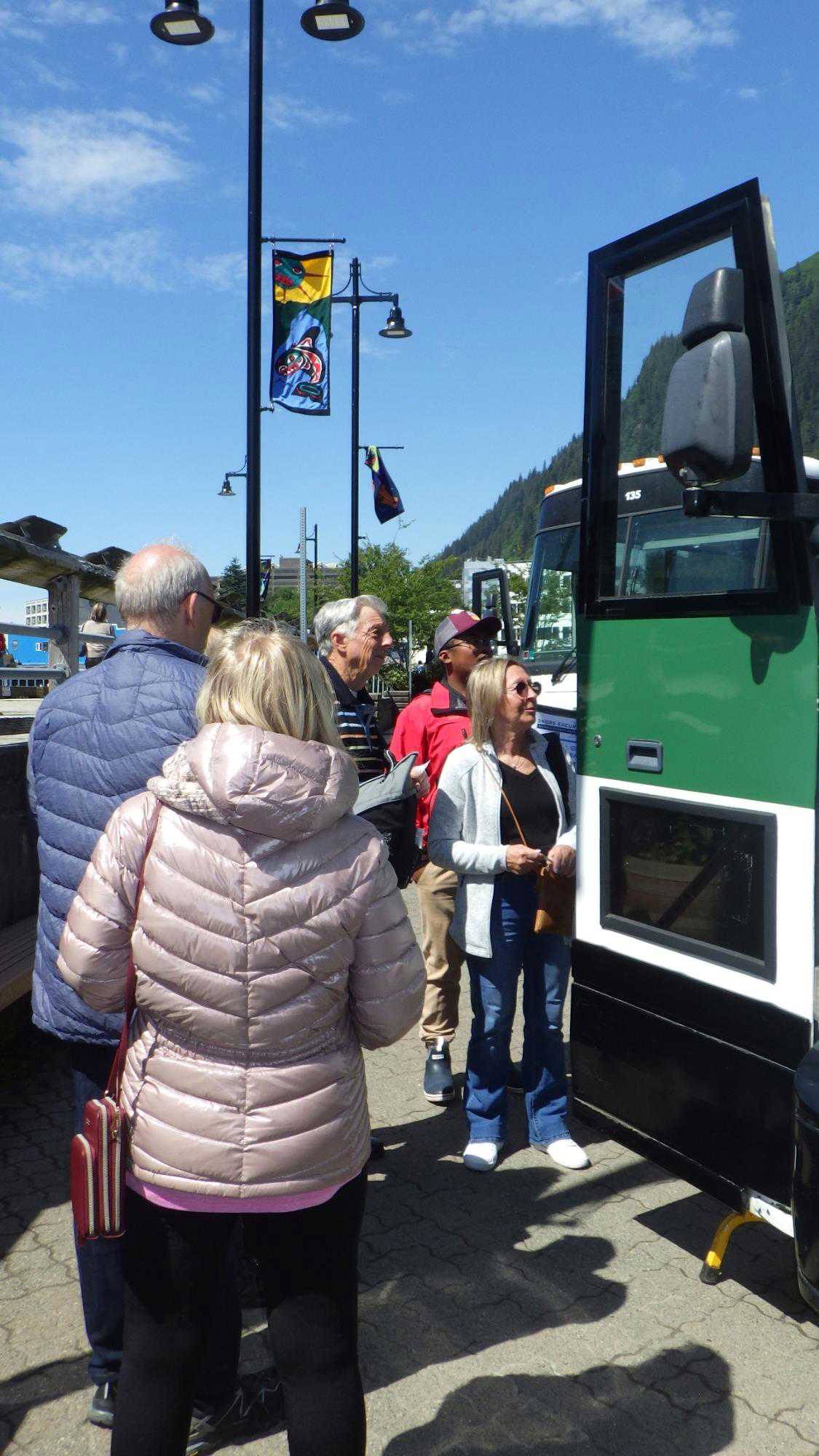 Ce matin, nous étions attendus au port de Juneau à 7 :30 heures. Ce que j’aime, c’est que nous avons un bon 1h30 de bonheur avant d’arriver sur place: le décor est magnifique, j’avais placé mon réveil pour 5h30, afin d’être prêt, wow! Il a fait vraiment beau et passablement chaud… 16 degrés.