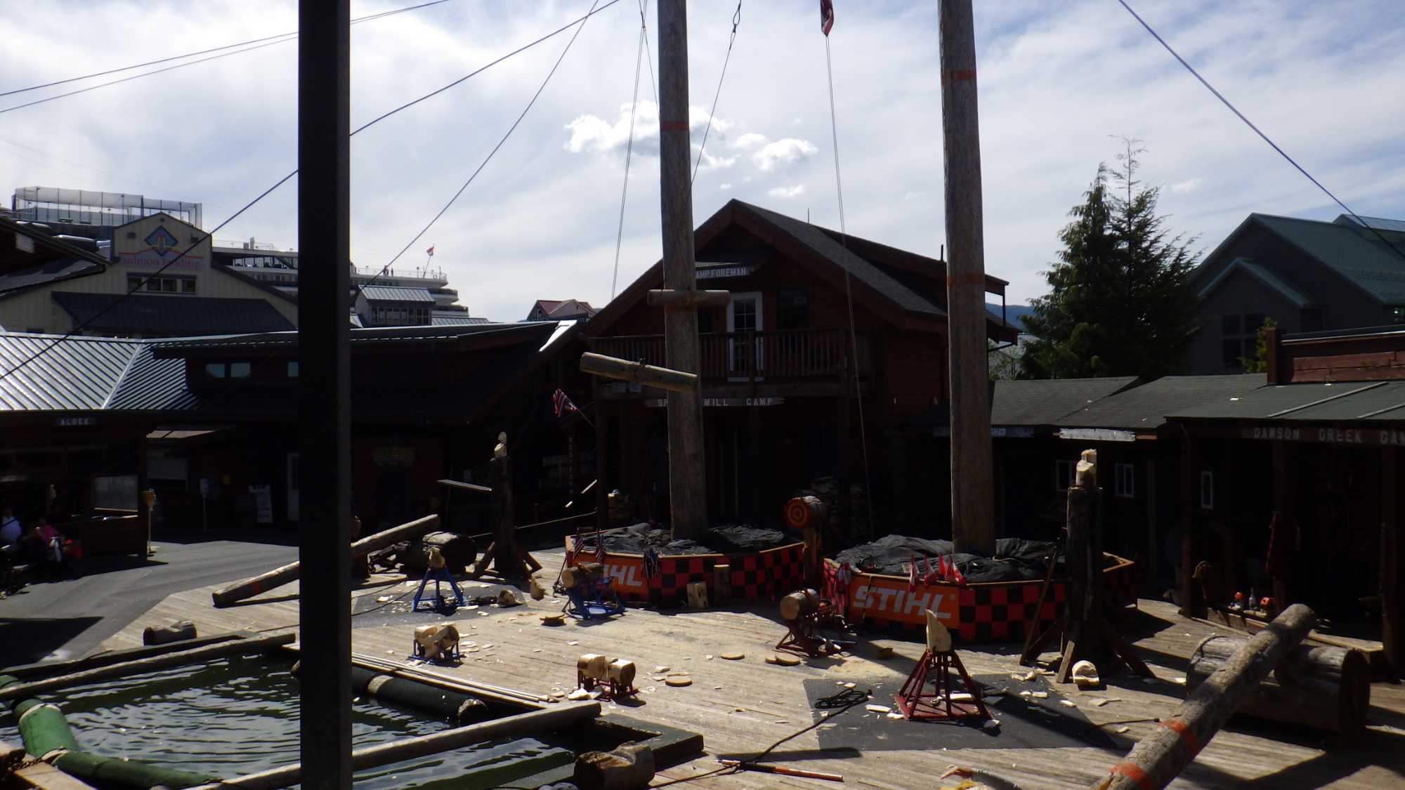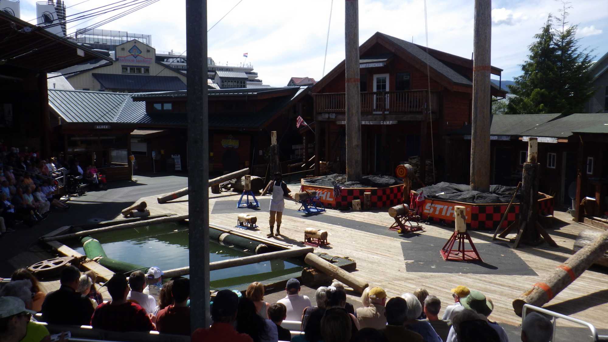 Les voyageurs de Voyage Louise Drouin sont tous sortis faire des excursions, des promenades à travers les petites rues et d'autres sont venus avec moi au spectacle des bûcherons. La rue Creek est à voir absolument avec ses magasins, son musée, sa maison close de Dolly, ses sentiers pour voir l’échelle à saumon et en plus toutes les constructions sont sur pilotis. J’ai eu la chance de faire profiter une bonne partie de mon groupe de ce beau coin de la ville très… rafraichissant.