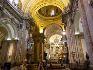 Notre guide nous amène ensuite par l’avenue du 9 juillet où nous apercevons l’obélisque érigé en plein centre de l’immense voie publique. Sur la même avenue, nous pouvons voir le profil d’Eva Peron dessiné sur le côté d’un immense immeuble blanc, c’est pour rappeler l’immense impact qu’a eu cette grande dame sur le peuple du pays. Nous continuons notre excursion vers la Place de Mai, le coeur symbolique de Buenos Aires. C’est le lieu du pouvoir entre l’ancien hôtel de ville, construite en 1725, et le siège de la présidence datant de 1873. Nous visitons la cathédrale Metropolitana, celle-là même ou le pape François y disait la messe avant d’atteindre la plus haute fonction de l’Église catholique. C’est la plus vaste église du pays aux allures de temple grec. On y retrouve les restes de San Martin, héros de l’indépendance, qui repose dans une chapelle, veillé par deux soldats.