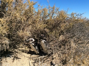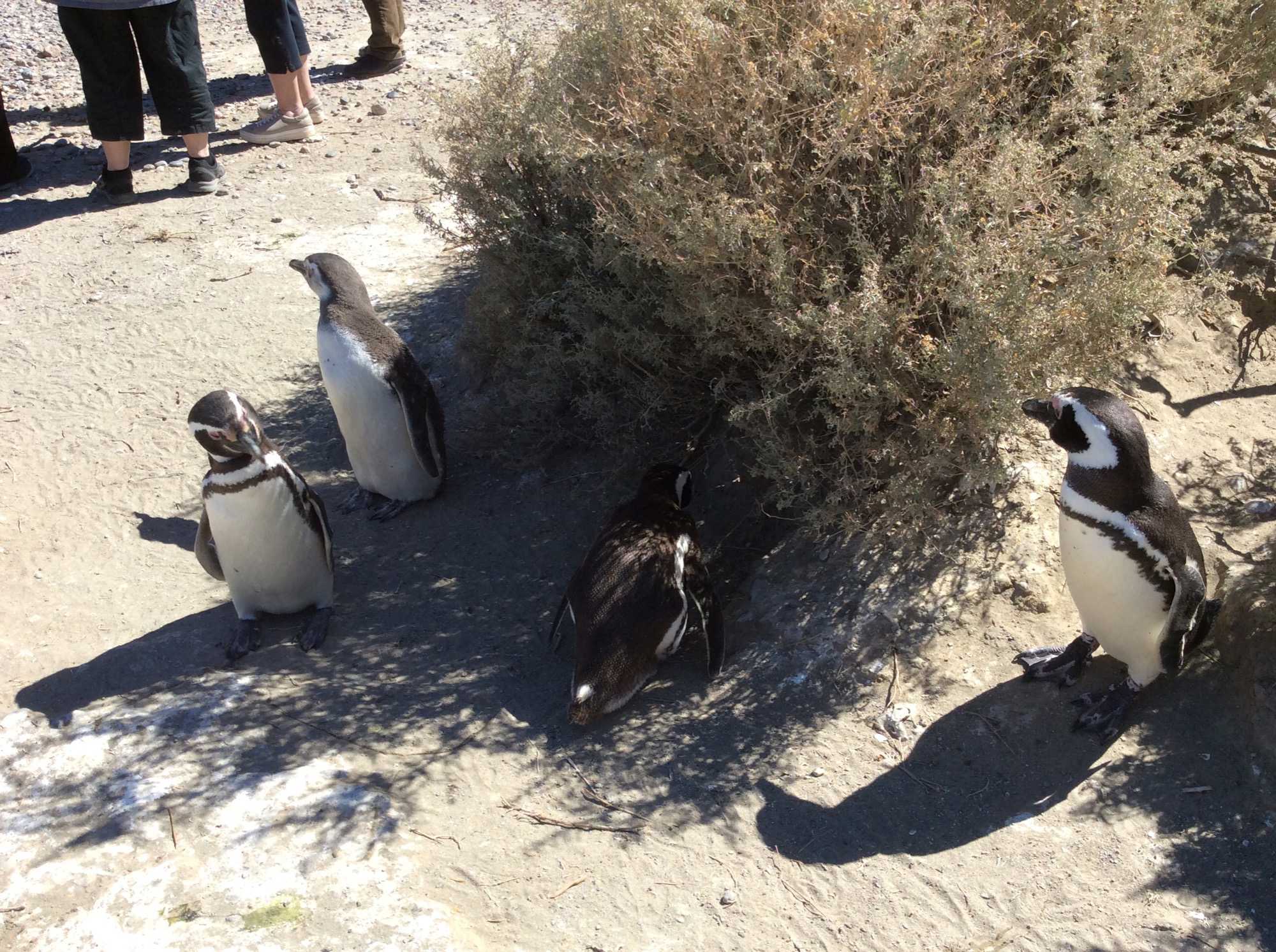 Puis nous entamons notre randonnée à la découverte de la réserve du domaine El Pedral. L’observation des pingouins de Magellan s’y fait de septembre à mars car ils viennent pour avoir un ou deux bébés. En dehors de cette période, ils retournent au Brésil pour leur longue migration. Les pingouins Magellan sont incapables de voler dû à leur adaptation à la vie marine mais ce sont de très bons nageurs puisqu’ils peuvent atteindre une vitesse de 35 km/h. Animaux exclusivement présents dans l’hémisphère austral, ils se nourrissent du fruit de leur chasse en mer. La colonie, protégée et déclarée « Refuge naturel et sauvage Punta Ninfas », ne cesse de croître depuis son installation en 2009. Nous devons respecter une certaine distance des pingouins pour ne pas les effrayer. Là-bas, nous profitons d’une magnifique vue sur l’océan et sur les falaises bordant le refuge.