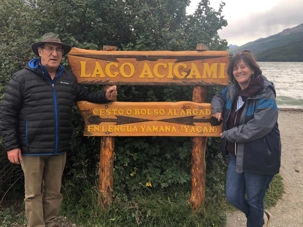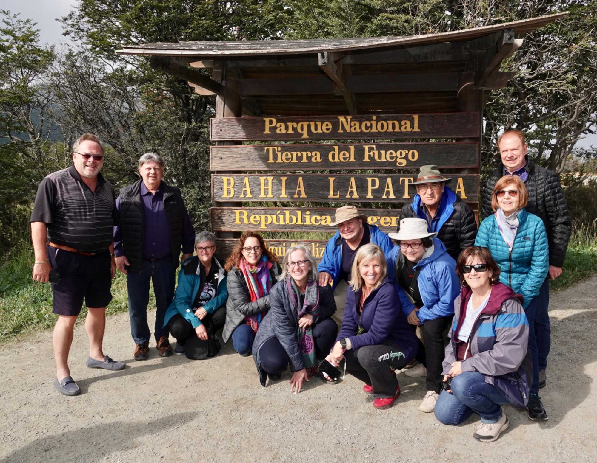 Notre charmante guide Chamilé était au rendez-vous pour notre arrivée, dans le tout petit aéroport de la ville. Un seul appareil à la fois peut atterrir ici! Nous récupérons nos valises. Ce faisant, je remercie le ciel, elles sont toutes là! Je n’osais m’imaginer une valise manquante pour une expédition de ce genre…c’est bien différent d’une croisière dans les Caraïbes… Comme vous vous souvenez, cette mésaventure m’était arrivée…. Tout est donc parfait et nous sommes prêts à partir à la découverte de la belle ville d’Ushuaia avec Chamilé. Un autobus presque privé pour notre groupe nous attendait et nous traversons la ville de 70 000 habitants, tout de même important comme nombre, et nous nous dirigeons vers notre restaurant situé hors de la ville dans la région des montagnes. Un succulent repas nous a été servi, l’agneau cuit sur le feu dans la tradition locale, était vraiment exceptionnel. Pour ceux qui n’aimaient pas, nous avions également du poulet. Mais l’agneau valait le déplacement. Quand nous disons semi privé c'est que plusieurs se sont trompés de bus et que cela était bien compliqué de les faire descendre de l'autobus. Comme il y avait beaucoup de place cela n'était pas important.