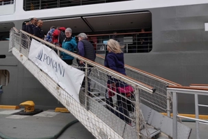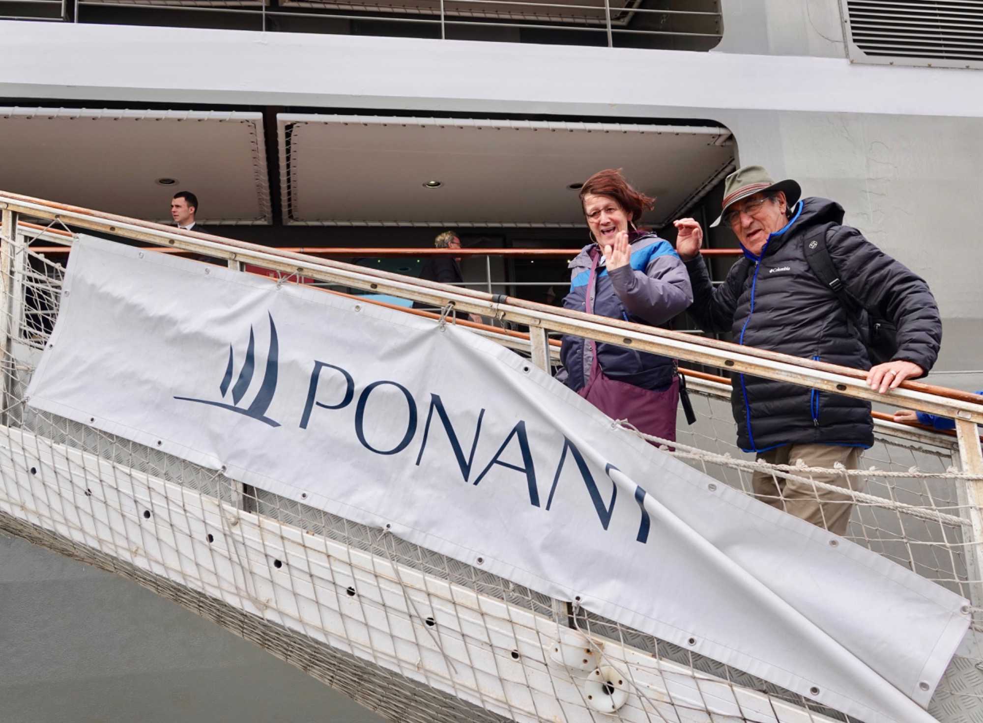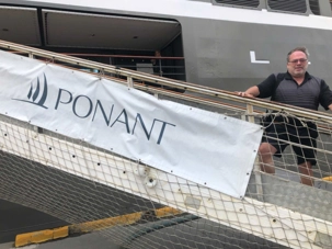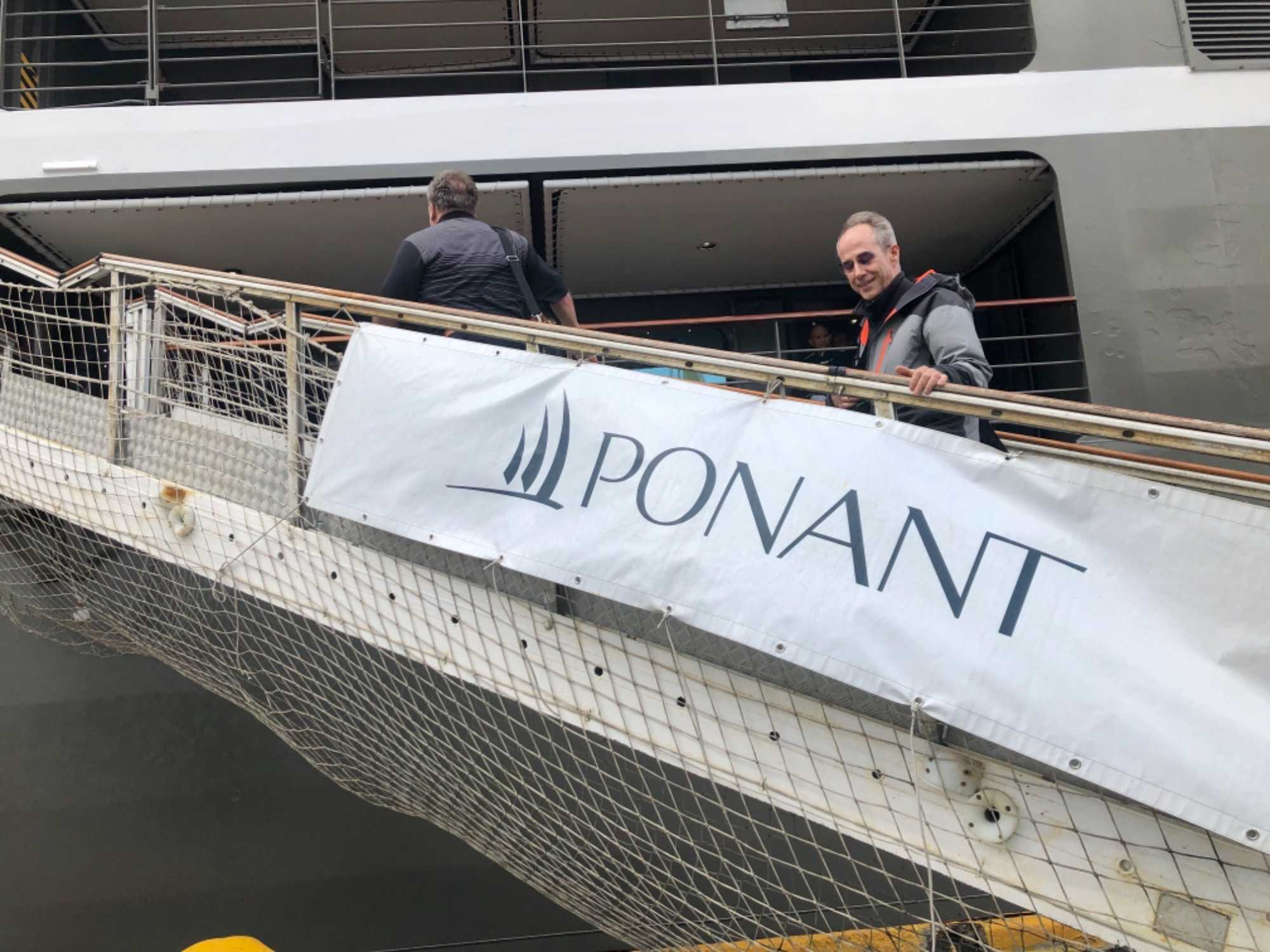 Nous terminons donc après plusieurs beaux arrêts dans le parc au port où nous sommes heureux de monter à bord. On sent la joie dans les sourires de tous mes voyageurs lorsque je les prends en photo tout en gravissant la passerelle vers le Boréal. Quel accueil! Digne d’un navire de luxe! Je dois ajouter qu’avec seulement 200 passagers à bord, on se sent chez-nous… Même le charmant et beau capitaine Christophe Colaris, était sur le pont pour nous souhaiter la bienvenue. Je vous parlerai du navire demain dans mon récit car nous serons en mer.