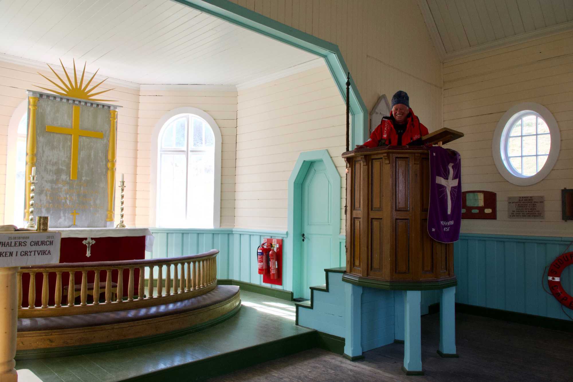 La végétation qui nous entoure est classé avec l’appellation d’une toundra. Dans une toundra, la végétation se compose d'herbe, de mousse, d'arbustes, de lichens et de carex, ainsi que de quelques arbres dispersés. Les températures moyennes annuelles annuelles à Grytviken vont de de -1 °C (minimum) à 5 °C (maximum). Les précipitations annuelles sont de l'ordre de 1 000 mm. Nous réalisons la chance que nous avons aujourd'hui. Nous avons visité le musée de Géorgie du Sud, ouvert en 1991 La colonie, qui abritait environ 450 hommes dans la saison de mars à octobre vivait dans des conditions assez difficiles, ils travaillaient 12 heures par jour et 7 jours par semaine. Une seule femme habitait la ville et était la femme du responsable du chantier.