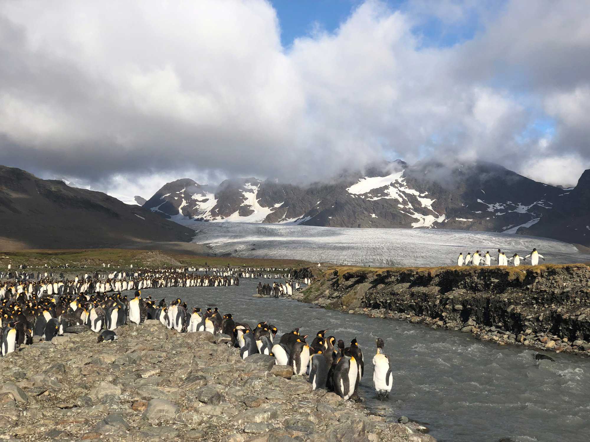 On y trouve la plus grande colonie de manchots royaux de toute la Géorgie du Sud. Un spectacle visuel et auditif hallucinant, avec des collines entières recouvertes de manchots adultes faisant des allers-retours en mer afin de pouvoir nourrir leurs petits. Quels moments magiques!