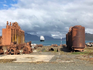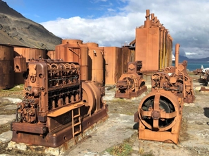 Par la suite une courte navigation avant d'atteindre l'ancienne station de Grytviken. Cette station baleinière située en Géorgie du Sud dont on doit au capitaine norvégien Carl Anton Larsen la fondation. Niché sur les rives de l'île montagneuse de Géorgie du Sud, l'endroit était déjà fréquenté auparavant par des chasseurs de baleines. Grytviken porte un nom suédois signifiant « baie des pots », en référence aux pots utilisés pour transporter la graisse de phoque. Carl Anton Larsen a établi une station baleinière en 1904, avec l’aide d’une soixantaine de compatriotes. Les baleiniers extrayaient l'huile de la graisse, de la viande et des viscères, tandis que les os et la viande servaient pour l'alimentation animale et les engrais. Ils chassaient également chasser les éléphants de mer.