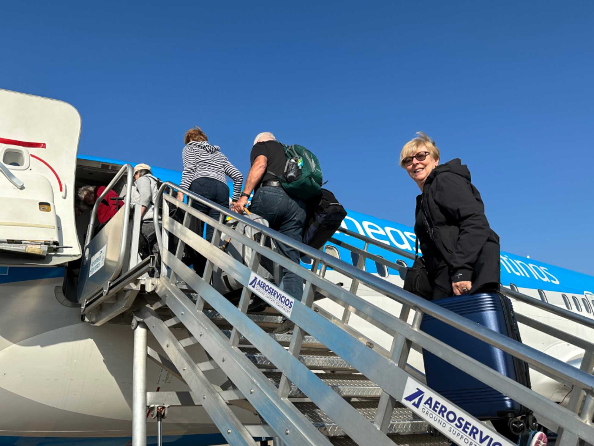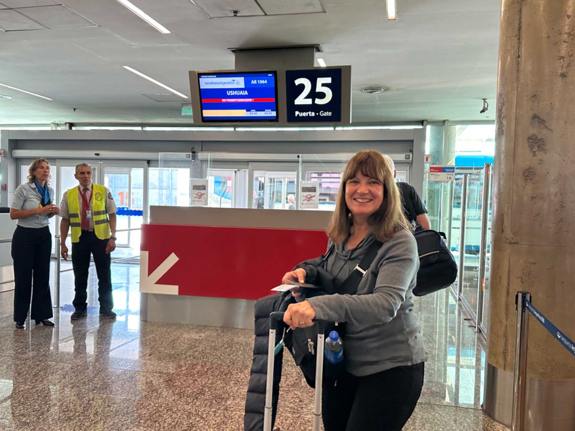 Notre lever sera très tôt ce matin, à 5h40, pour prendre un vol vers Ushuaïa. Cela nous permettra de découvrir le parc de la Terre de Feu. Tous les voyageurs sont de bien bonne humeur car oui, le début de l'aventure en Antarctique commencera sous peu. Nous n'avons pas rencontré de circulation à cette heure le matin donc nous arrivons rapidement à l'aéroport de Buenos Aires. Nous nous enregistrons sans problème avec l’aide du personnel de la compagnie de bateaux de croisières Ponant.