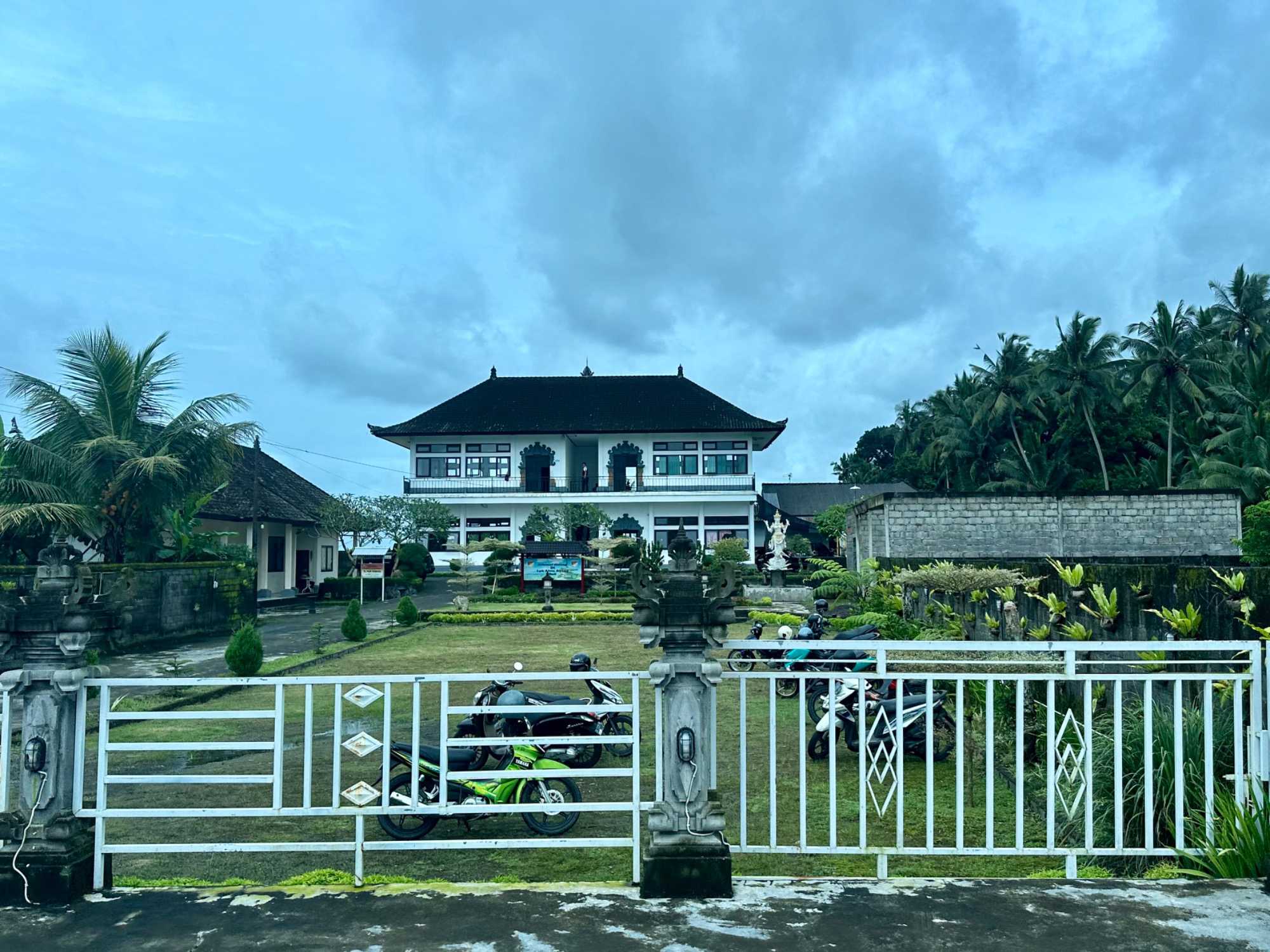Après le dîner, nous nous sommes dirigés vers le Palais royal de Klungkung. Une cour extérieure avec un palais de justice présentant de magnifiques fresques peintes au plafond. Ces dernières rappellent que la justice divine est bien plus implacable que celle des hommes. Les balinais sont tolérants entre eux malgré leurs différences au niveau des croyances. L’unité dans la diversité comme, il nous a été expliqué. Une forte pluie s’est invitée à la fin de notre visite. Devions-nous payer pour notre karma ? Cela nous a tout de même permis de constater que l’urbanisme est à développer pour les systèmes d’égouttement pluviaux.