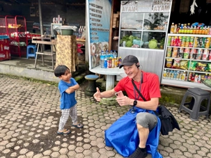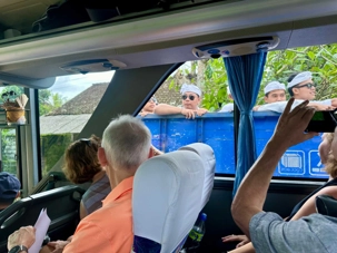 Après le déjeuner prit à notre hôtel, nous avons retrouvé nos guides locaux kabal et Popo pour la découverte de l’est de Bali. Juste avant notre départ, plusieurs voyageurs sont devenus millionnaires en roupies. Louise avait fait venir une personne pouvant changer notre argent en roupies indonésiens. Actuellement, il est plus facile de payer avec la monnaie locale ici à Bali. Nos banquiers Danielle et Sylvain étaient ravis de nous déclarer millionnaires !