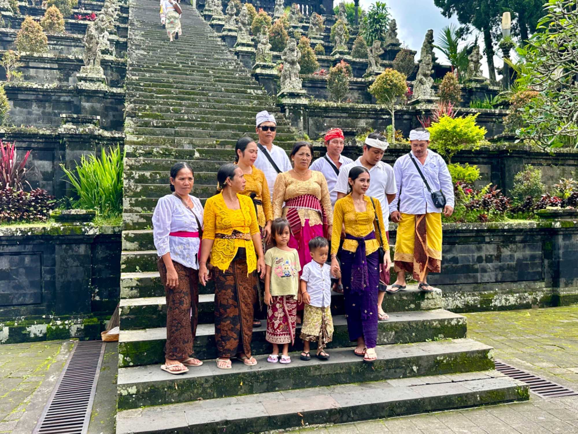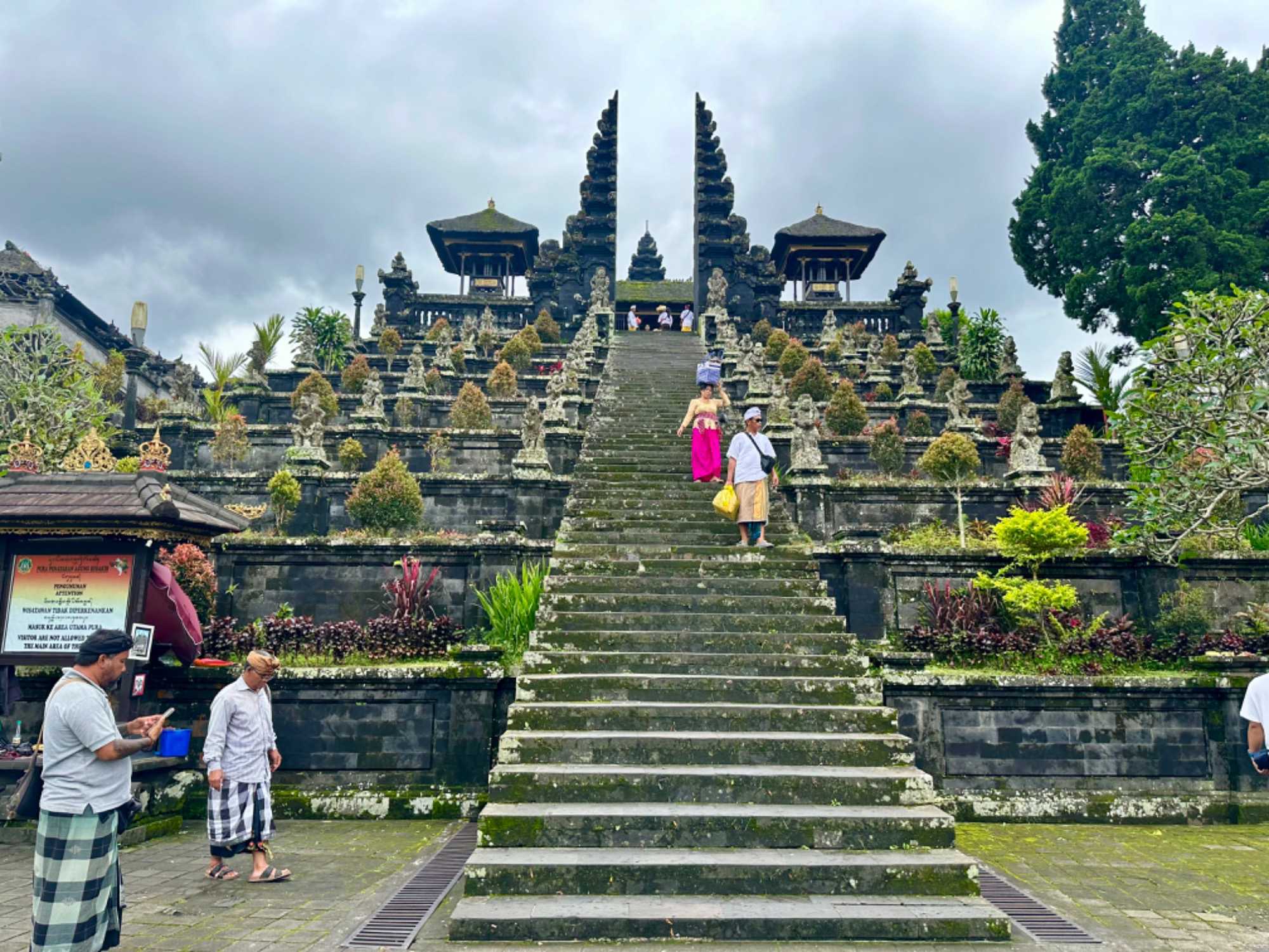 Au fil des siècles, Besakih a été le témoin de nombreux événements significatifs. Il a survécu à plusieurs éruptions majeures du mont Agung, notamment celle de 1963, qui a dévasté de nombreuses régions de Bali, mais a miraculeusement épargné le temple, renforçant ainsi sa stature sacrée parmi les Balinais. Le complexe est composé de 23 temples, chacun ayant une signification et un rôle spécifique dans la vie spirituelle balinaise. Pour les Balinais, une visite à Besakih est un pèlerinage essentiel, une occasion de se connecter avec les divinités, les ancêtres et l'univers. D’ailleurs, les jeunes balinais se font de plus en plus présents au temple.