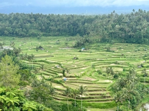 Après la visite, nous avons bien aimé le repas de style buffet que nous avons mangé dans un restaurant local qui nous offrait une vue magnifique sur les rizières. Ici il y a des « cigales de complétion », nous avons été impressionnés par la puissance de leurs chants.