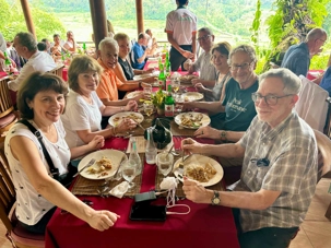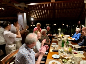 Après cette belle première journée de visite organisée, un souper de bienvenue nous était offert à notre hôtel avec chansonnier pour agrémenter la soirée. Nous en avons profité pour souligner l’anniversaire de Bernadette. Son conjoint Germain, avait eu une belle attention pour cette dernière en faisant signer secrètement une carte d’anniversaire par les voyageurs. Il lui a même chanté une chanson. Les hommes présents auront de la pression pour l’anniversaire de leur conjointe.