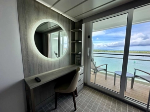 La cabine est très belle et fonctionnelle. L’accueil du personnel a été extraordinaire. Je crois que nous serons traités aux petits soins tout au cours de cette croisière !