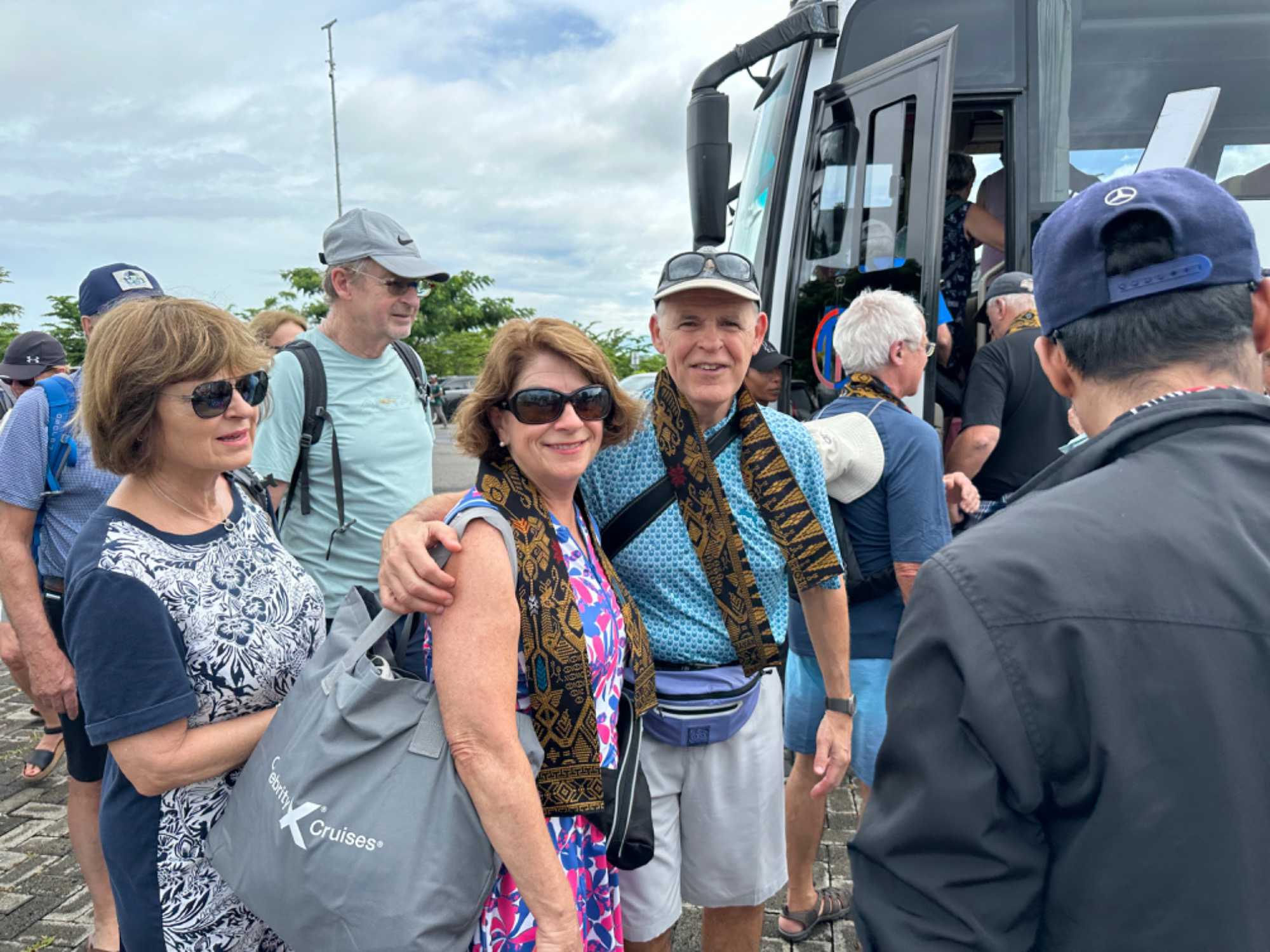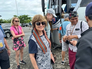 Cette fois, nous avions un seul autocar et un nouveau guide local de Lombok. Edi notre guide pour la journée a remis à chacun des voyageurs un petit foulard en guise de bienvenue sur l’ile.