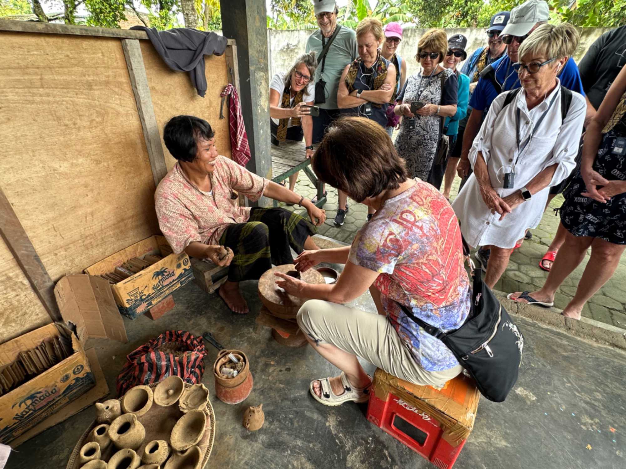 Nous avons débuté la journée par la visite d’un village de poterie. Danielle, Nicole et Lucie ont expérimenté la fabrication d’objets en poterie à l’aide des artisanes sur place. Cela nous a fait peser au film Mon fantôme d’amour. Nous avions quelques Demi Moore en action. Nous en avons profité pour acheter des œuvres. Je penserai à Bali lors ce que je vais utiliser le pot pour conserver l’ail qui m’a été offert.