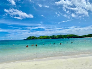 Après le dîner nous avons pris la direction de la plage. Nous en avons bien profité pour se rafraîchir bien que l’eau de l’océan fût chaude. Nous avions des chaises de réservée pour notre groupe mais la majorité des voyageurs se sont laissé tenter par la baignade. Le sable était blanc et fin et il y avait de petites montagnes autour, le paysage était fabuleux. Lombok est peu développé au niveau touristique. Nous parions que cette plage ne demeurera pas publique longtemps.