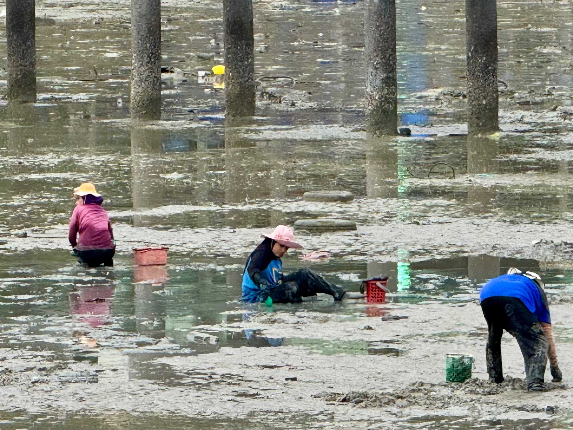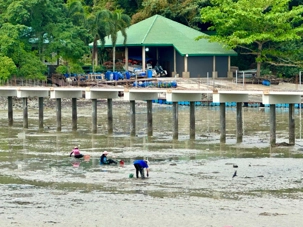 Nous avons fait un bref arrêt dans un village traditionnel de pêcheurs. Le gouvernement a construit des HLM pour loger les familles des pêcheurs. Nous avons marché sur un long quai pour voir leurs embarcations. Nous avons appris que non seulement les drapeaux indiquent la provenance des embarcations mais aussi les couleurs des bateaux. Comme nous sommes près des frontières, dont la Thaïlande, il est plus facile d’identifier la provenance des bateaux de pêcheurs pour les contrôleurs en hélicoptère. Par ici, dans la mer il n’y a pas de requins outre de très petits, mais il faut craindre les méduses, il y en a beaucoup dépendamment de la saison.