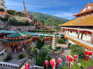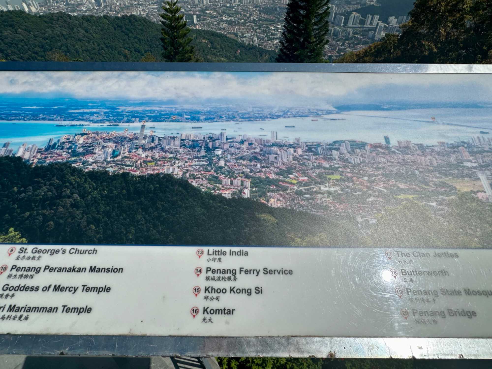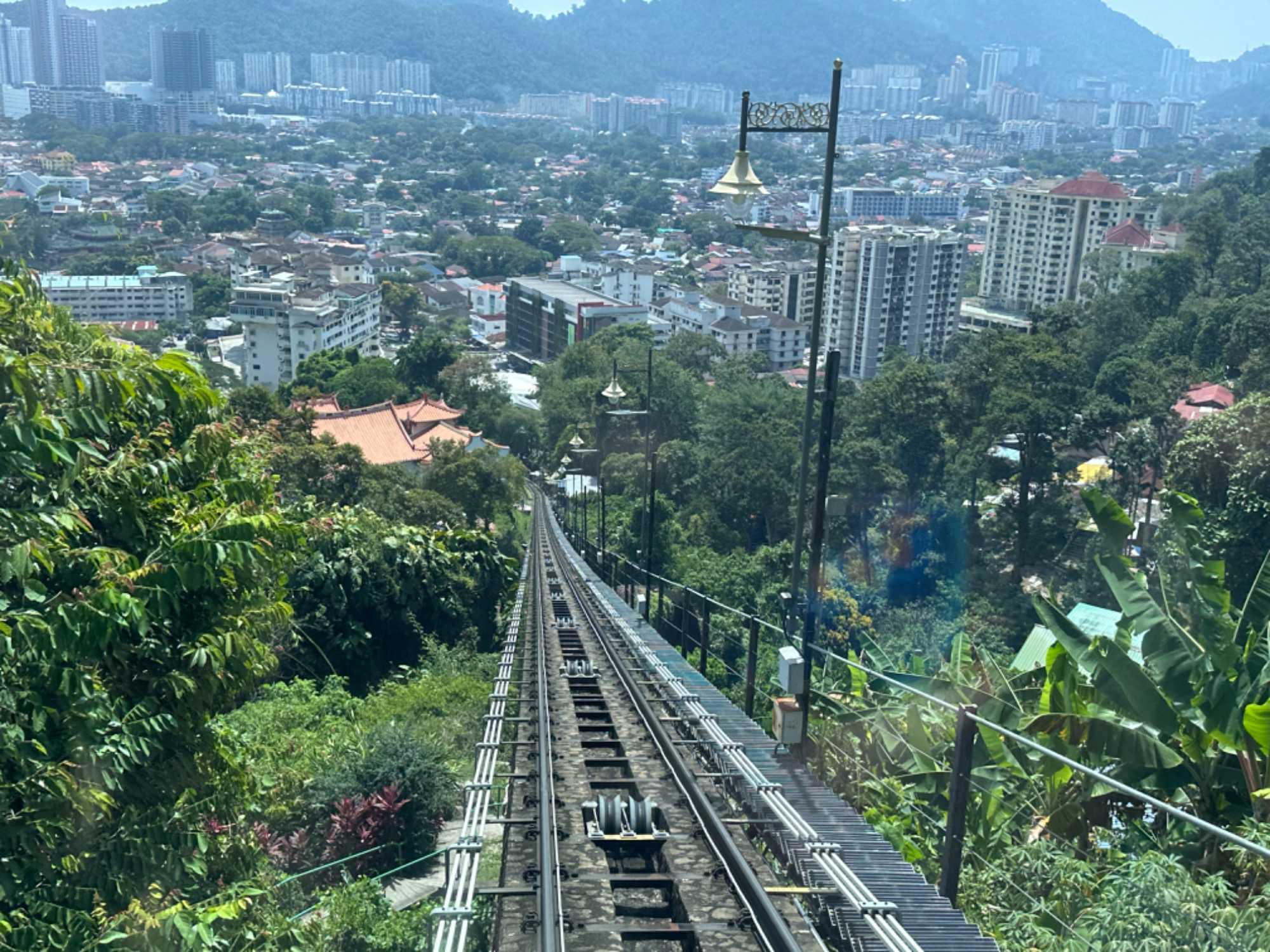 Ensuite, nous sommes montés sur la colline de Penang ou Bukit Bendera en empruntant un train funiculaire jusqu’à une hauteur de 800 mètres au-dessus du niveau de la mer. Il s’agit de la plus ancienne station de montagne de Malaisie ; les voyageurs ont eu l’occasion d’admirer des vues panoramiques de l’île et du continent. Nous y avons pris un excellent dîner de pâtes aux fruits de mer.