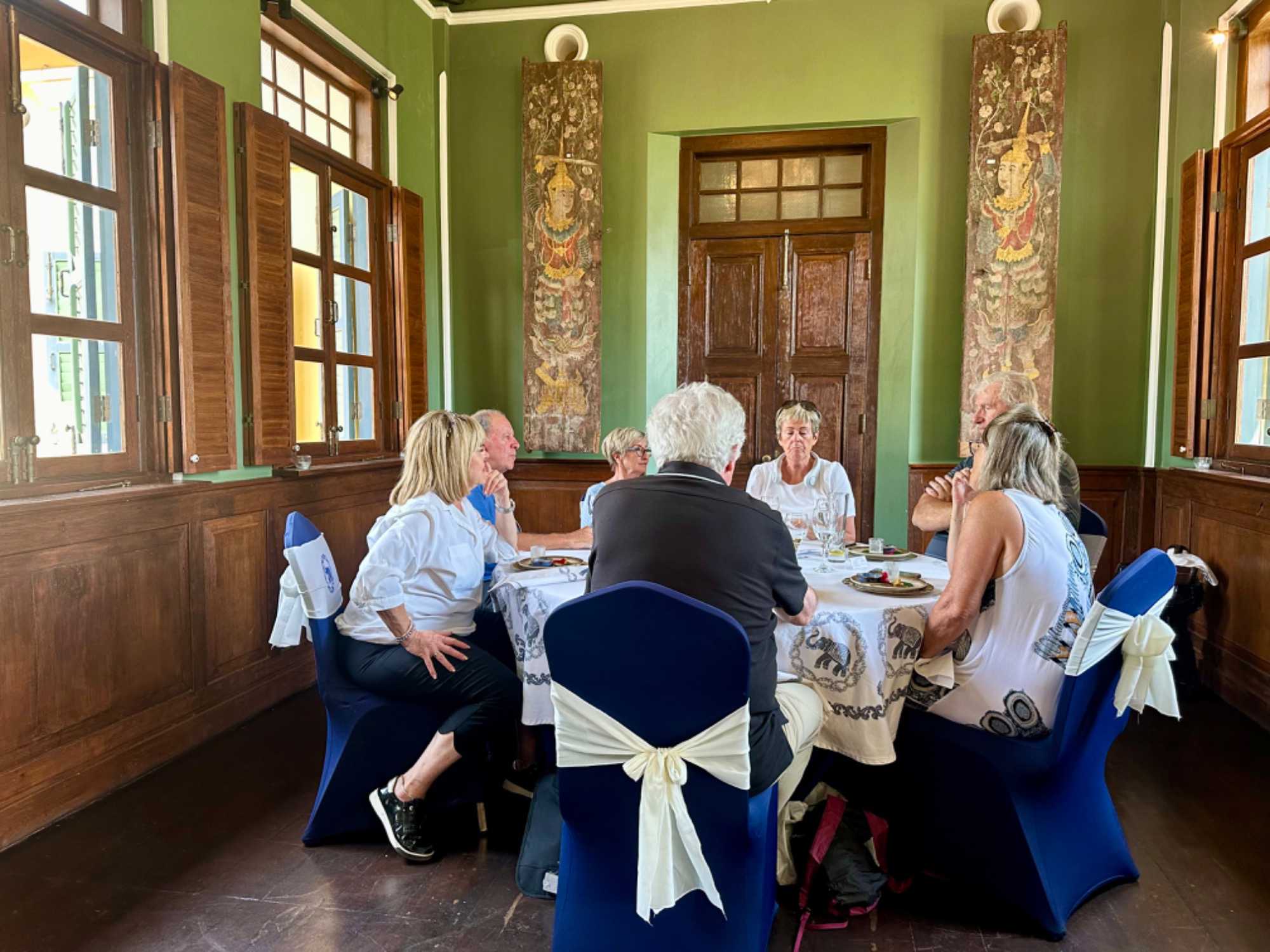 Ensuite, nous nous avons avons été agréablement reçu au restaurant Bleu éléphant pour un repas digne des rois. Le Blue Elephant Phuket est situé dans une des plus impressionnantes bâtisses de l’île. Cette ancienne demeure du Gouverneur est un bel exemple d’architecture Sino-Portugaise, rénové avec soin. Connu comme le Phra Pitak Chinpracha, ce bâtiment siège au coeur du centre historique de Phuket Town. Dès l’entrée, laissez-vous charmer par l’élégance de notre demeure historique de style sino-portugais. L’architecture, inspirée des principes du Feng Shui, inspire la tranquillité et l’harmonie, vous invitant à la détente et à la dégustation. Le cadre luxuriant et pittoresque complète cette expérience sensorielle unique. Avec un menu créé par la Chef Nooror, étoilée Michelin, le Blue Elephant Phuket sert une cuisine d’hier, d’aujourd’hui et de demain, présentant la cuisine typique du Sud de la Thaïlande au reste du monde. Notre Chef finit par retourner vivre dans sa terre natale pour piloter l’expansion des activités du Groupe. Le restaurant et école de cuisine Blue Elephant furent inaugurés à Bangkok en 2002, suivis par un autre établissement à Phuket en 2010. Nous avons grandement apprécié ce repas haut de gamme qui complétait à merveille notre belle journée à Phuket. Maintenant venu le temps de retourner au port pour embarquer sur notre navire qui quittera Phuket vers 17 h 30 ce soir. Une autre merveilleuse journée qui se termine et ce soir ce sera notre deuxième soirée de gala. Un autre repas digne de Celebrity avec du homard (langouste) au menu. Un autre excellent spectacle nous attendait au théâtre pour clôturer ce beau voyage!