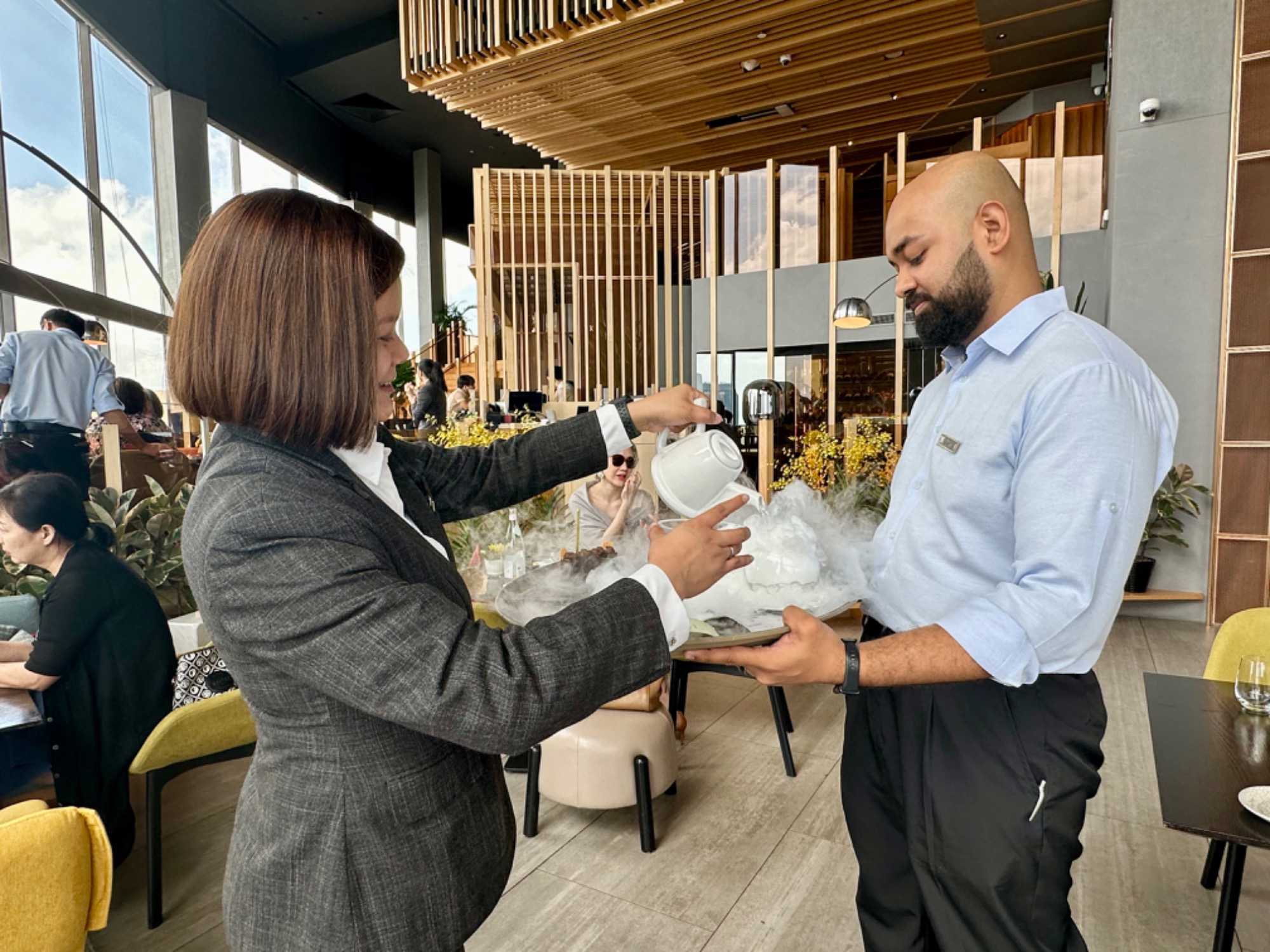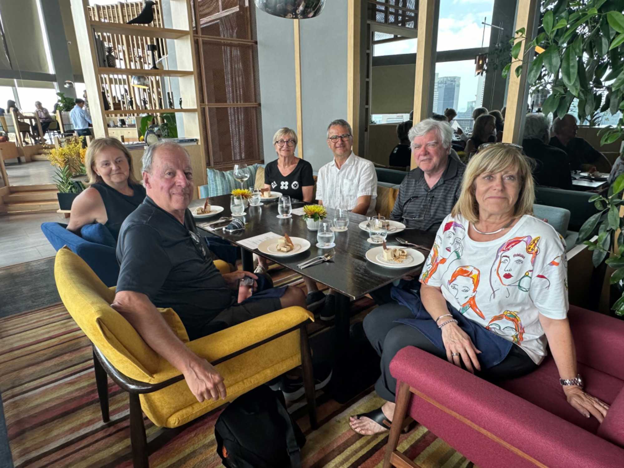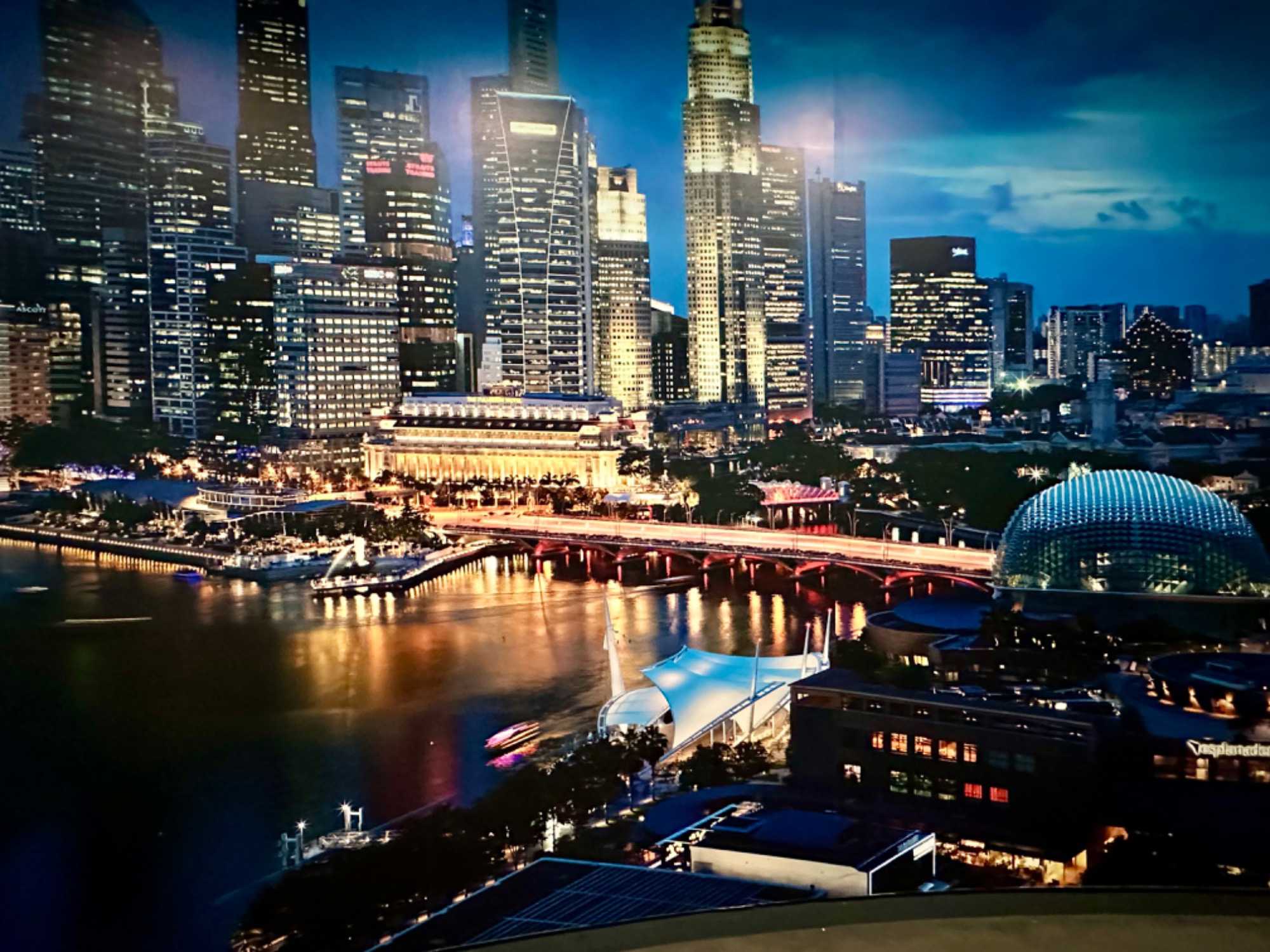 Nous nous sommes rendus au prestigieux restaurant Skai. Situé au 70e étage du célèbre Swissôtel de Stamford, la vue était imprenable sur la ville. Le repas que nous avons dégusté était tellement délicieux. Il faut dire que ce restaurant gastronomique est étoilé au Guide Michelin. Louise nous avait réservé cette belle surprise qui a été fort appréciée par les voyageurs. Nous en avons profité pour souhaiter un joyeux anniversaire à André. Cela nous prenait un endroit prestigieux pour célébrer cet homme si attentionné.