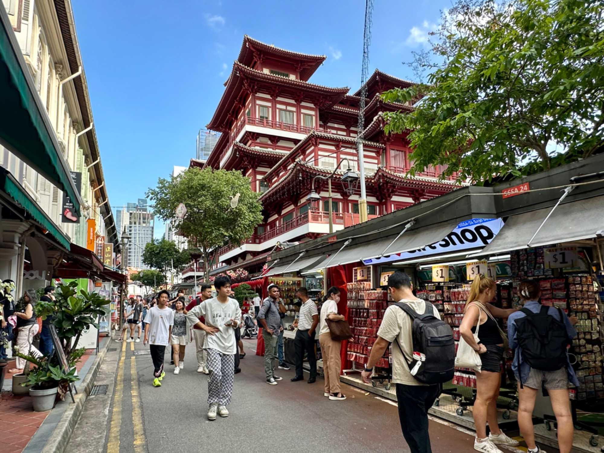 Il y avait des boutiques de médecine naturelle, d’acupuncture, de calligraphie, de thés. Nous sommes entrés dans le Buddha Tooth Relic Temple, un temple bouddhiste chinois au cœur du quartier chinois. Le temple présente de nombreuses facettes des arts et de la culture bouddhiste de Singapour.