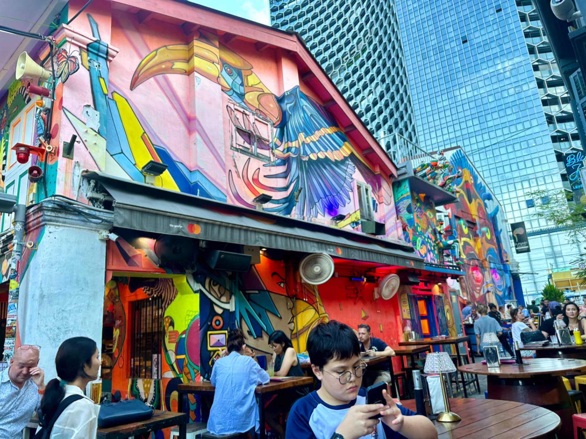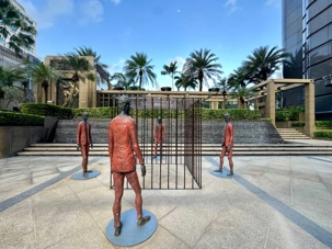 Friand d’architecture, notre guide nous a fait visiter Parkview Square, un gratte-ciel de 144 mètres de hauteur et de 24 étages, construit en 2002. La construction a duré 3 ans. À l’intérieur, les décorations sont très luxueuses, ce qui en fait l’immeuble à bureaux le plus coûteux de Singapour. Il y avait, entres autres, des sculptures de plusieurs artistes reconnus, dont deux de Salvador Dali à l’intérieur et la remarquable « Dressed Woman » de Fernando Botero à l’extérieur, vraiment les amateurs d’art étaient ravis.