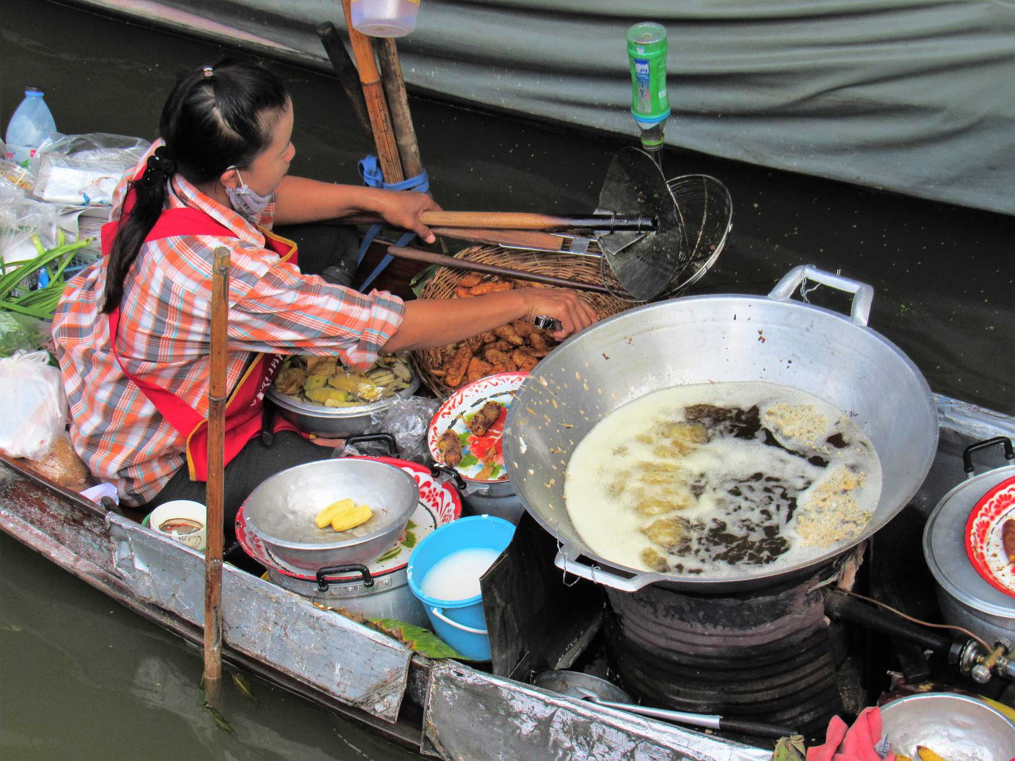 Le marché flottant est une attraction typique de toute personne qui vient en Thaïlande! Nous ne faisons pas exception à la règle! Nous avons la chance de voir l’activité du marché avec toutes ces barques qui naviguent le canal pour y faire du commerce. Les photos vous amuseront avec toute l’activité qui y règne. Nous avons le temps de nous y promener et de prendre bien des photos avant de prendre des bateaux à longues queues pour faire une jolie balade dans la Venise de la Thaïlande. La balade d’environ 30 minutes nous a montré la vie rurale et ses beaux paysages.